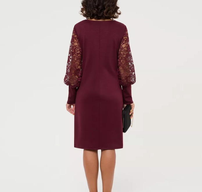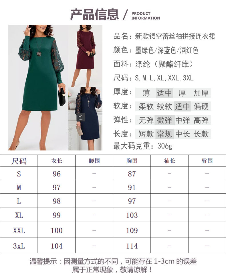 유럽과 미국 여성 국경 아마존 원피스 크루 넥 긴 소매 할로우 레이스 슬리브 스티칭 슬림 핏 원피스스토어 가기