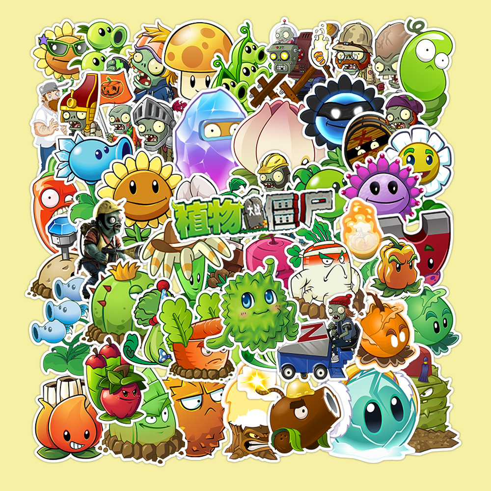 50 만화 식물 vs 좀비 창조적 인 스티커 diy 방수 노트북 물 컵 스케이트 보드 장식 stikcer스토어 가기