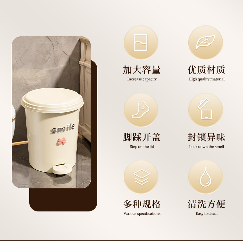 휴지통 가정용 2024 뚜껑이있는 새 화장실 주방 대용량 기숙사 거실 Heng Ming스토어 가기