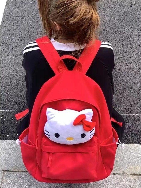 원래 KT 고양이 귀여운 Schoolbag 소녀 주니어 고등학생 봉제 대용량 배낭 대학생 배낭