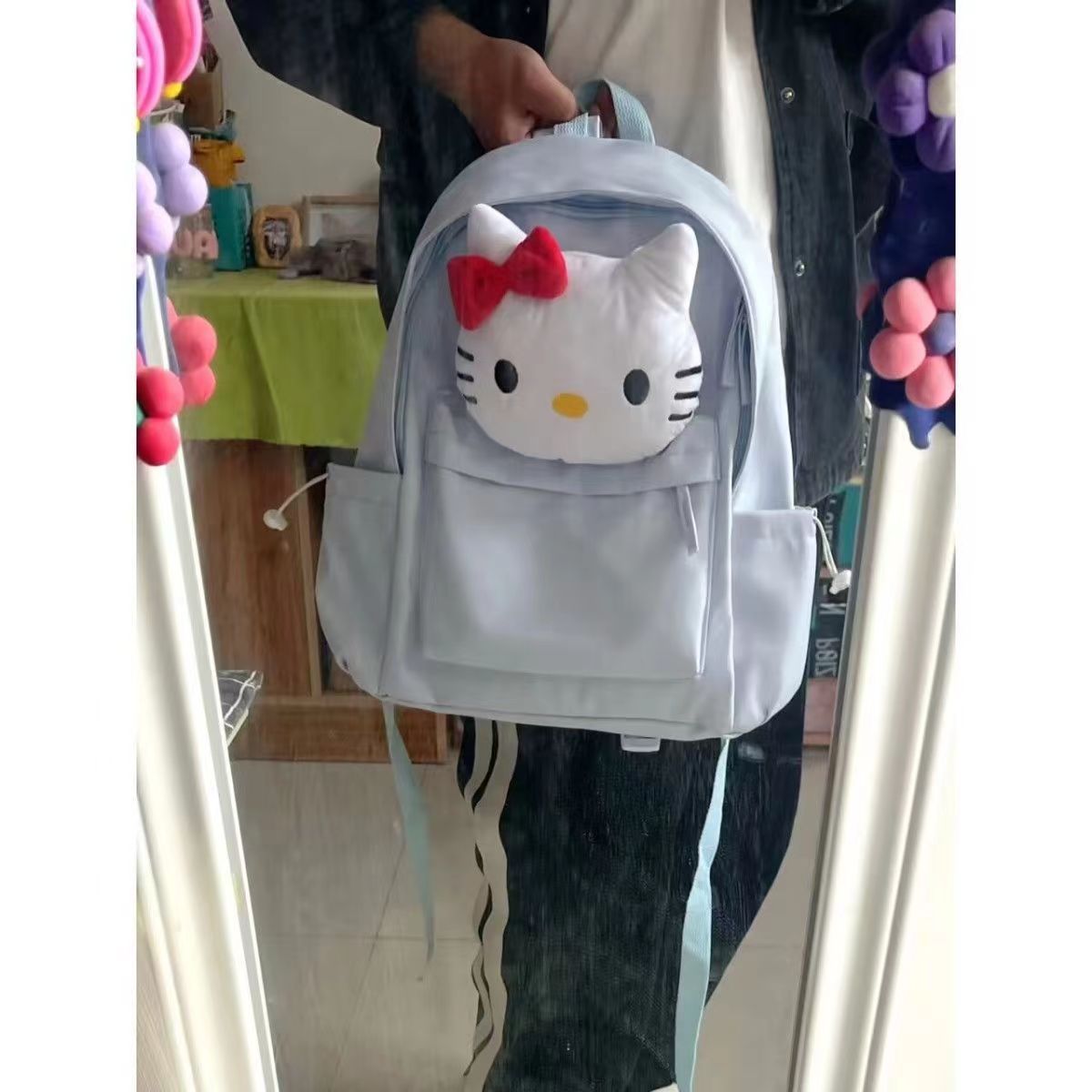 원래 KT 고양이 귀여운 Schoolbag 소녀 주니어 고등학생 봉제 대용량 배낭 대학생 배낭스토어 가기
