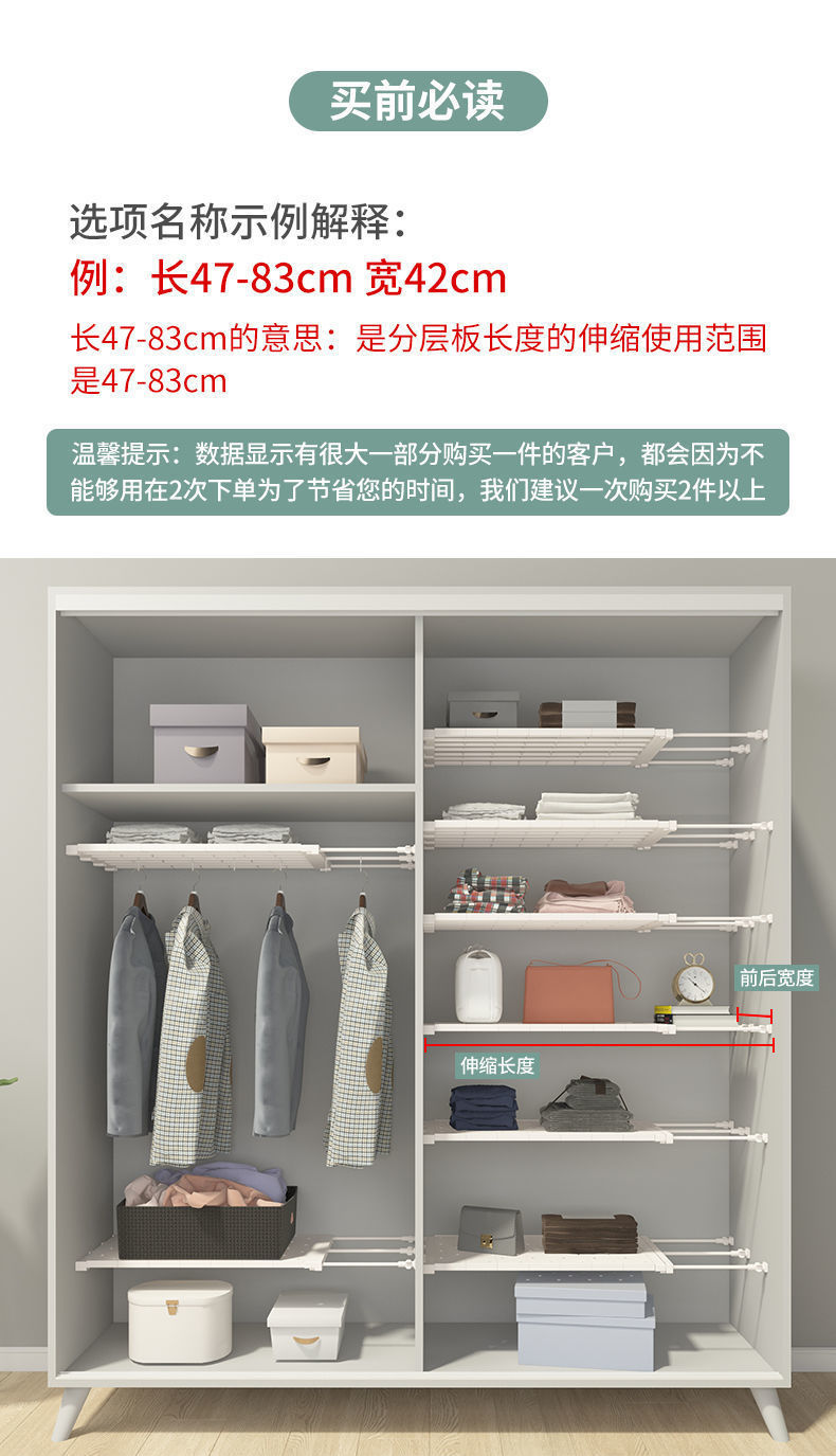 옷장 계층화 된 파티션 펀치 무료 텔레스코픽 스토리지 랙 옷장 주방 욕실 보관 랙 대학 학생의 기숙사 보관