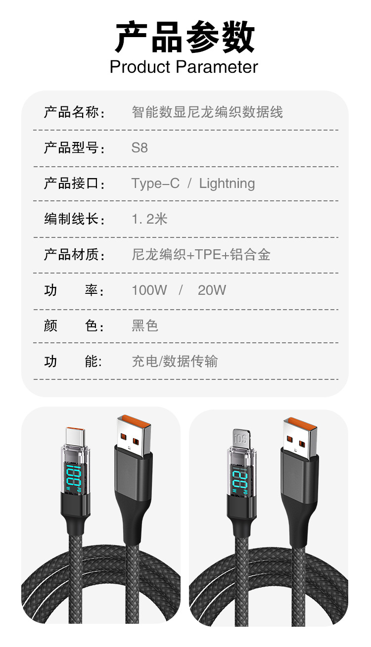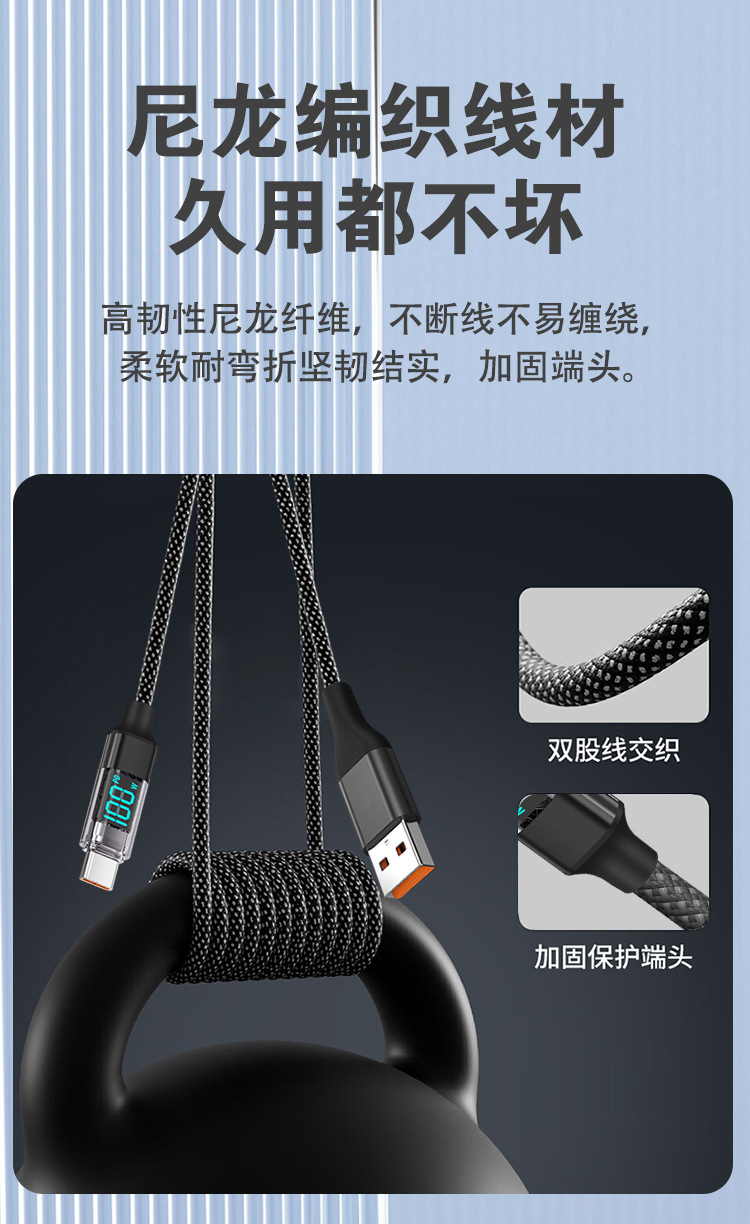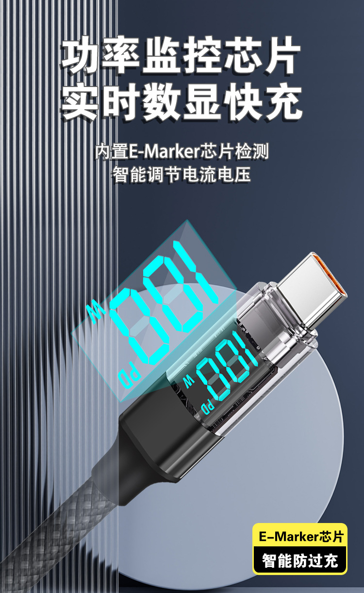 새로운 100W 지능형 디지털 디스플레이 데이터 케이블은 Apple oppo Huawei typec 고속 충전 라인 휴대 전화 충전 라인에 적합합니다.스토어 가기