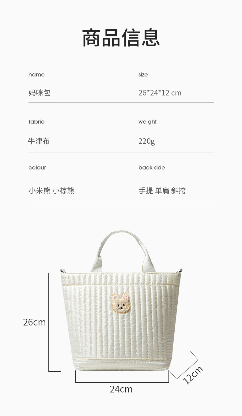 새로운 일본과 한국 스타일의 휴대용 엄마 가방 아기 병 기저귀 유모차 보관 가방 베어 자수 어린이 가방