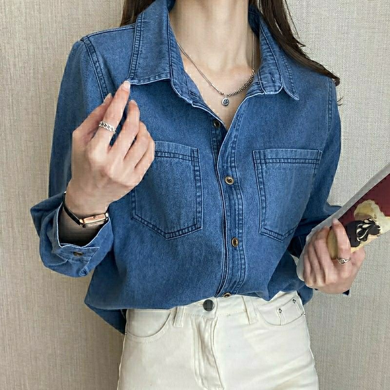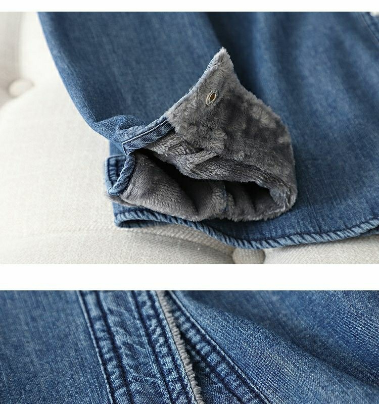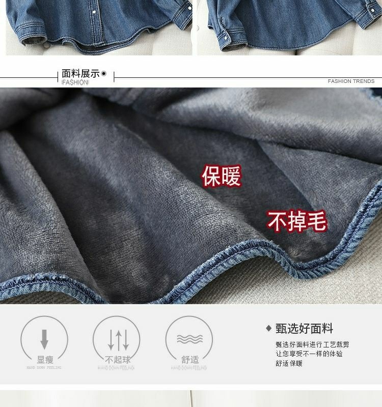 갈은 기모 데님 셔츠 여성의 유럽 가을과 겨울 새로운 씻은 느슨한 두꺼운 따뜻한 베이스 셔츠 원피스 벨벳 재킷스토어 가기