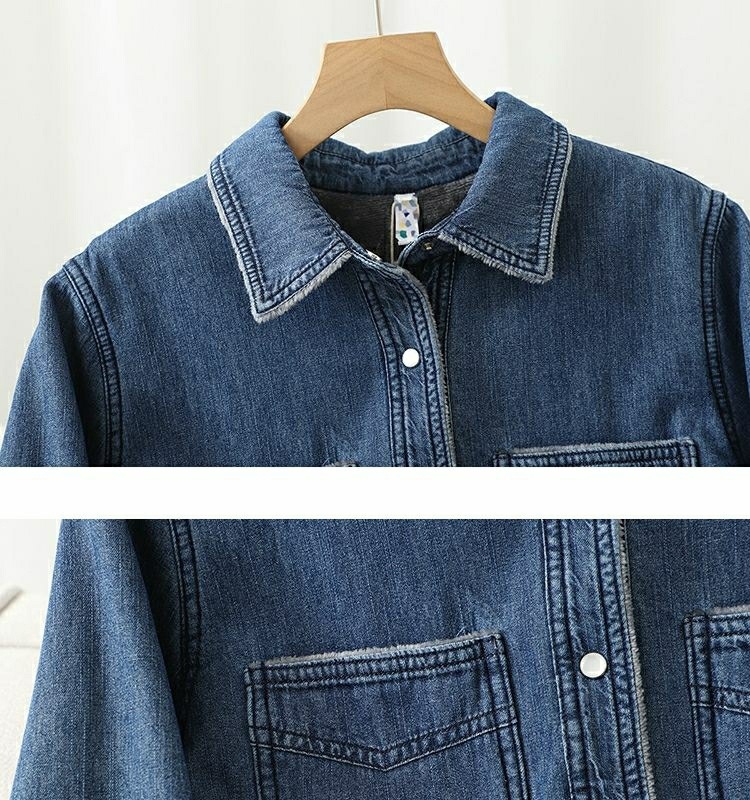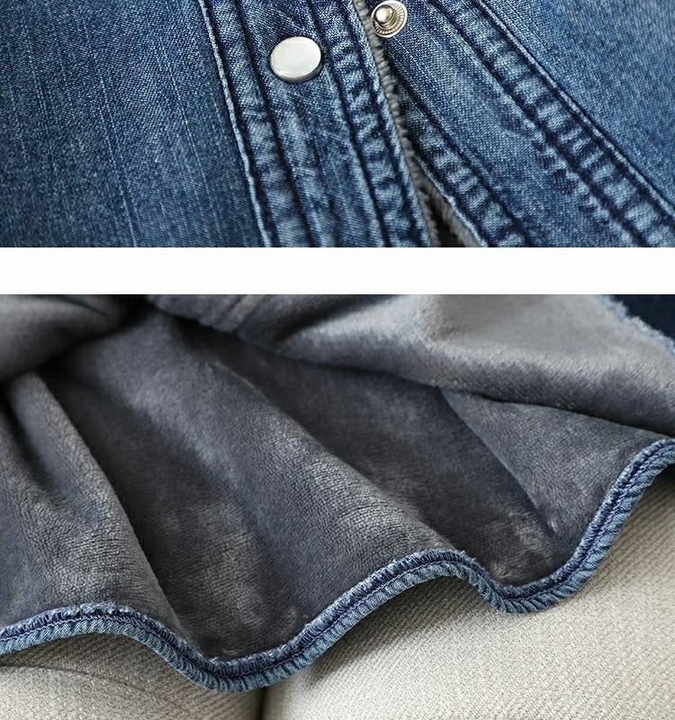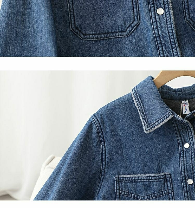갈은 기모 데님 셔츠 여성의 유럽 가을과 겨울 새로운 씻은 느슨한 두꺼운 따뜻한 베이스 셔츠 원피스 벨벳 재킷