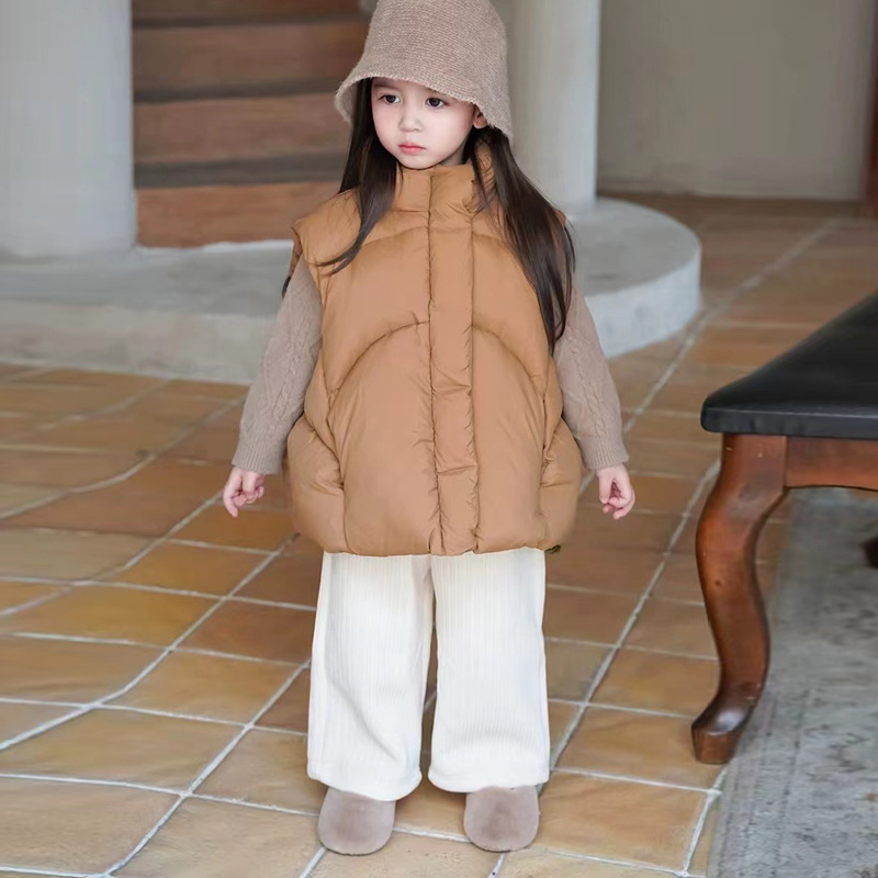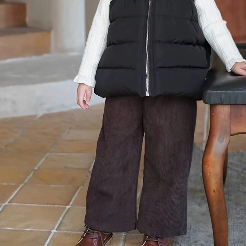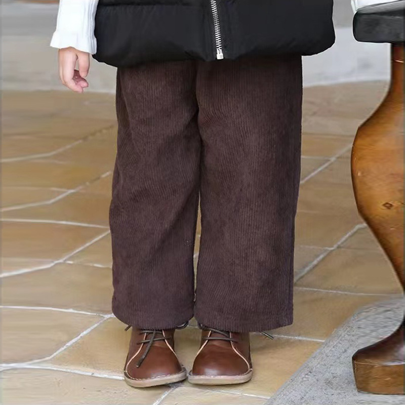 어린이 코듀로이 스트레이트 팬츠 여자 캐주얼 롱 팬츠 2024 가을과 겨울 소년의 올 매치 루즈 따뜻한 와이드 레그 팬츠
