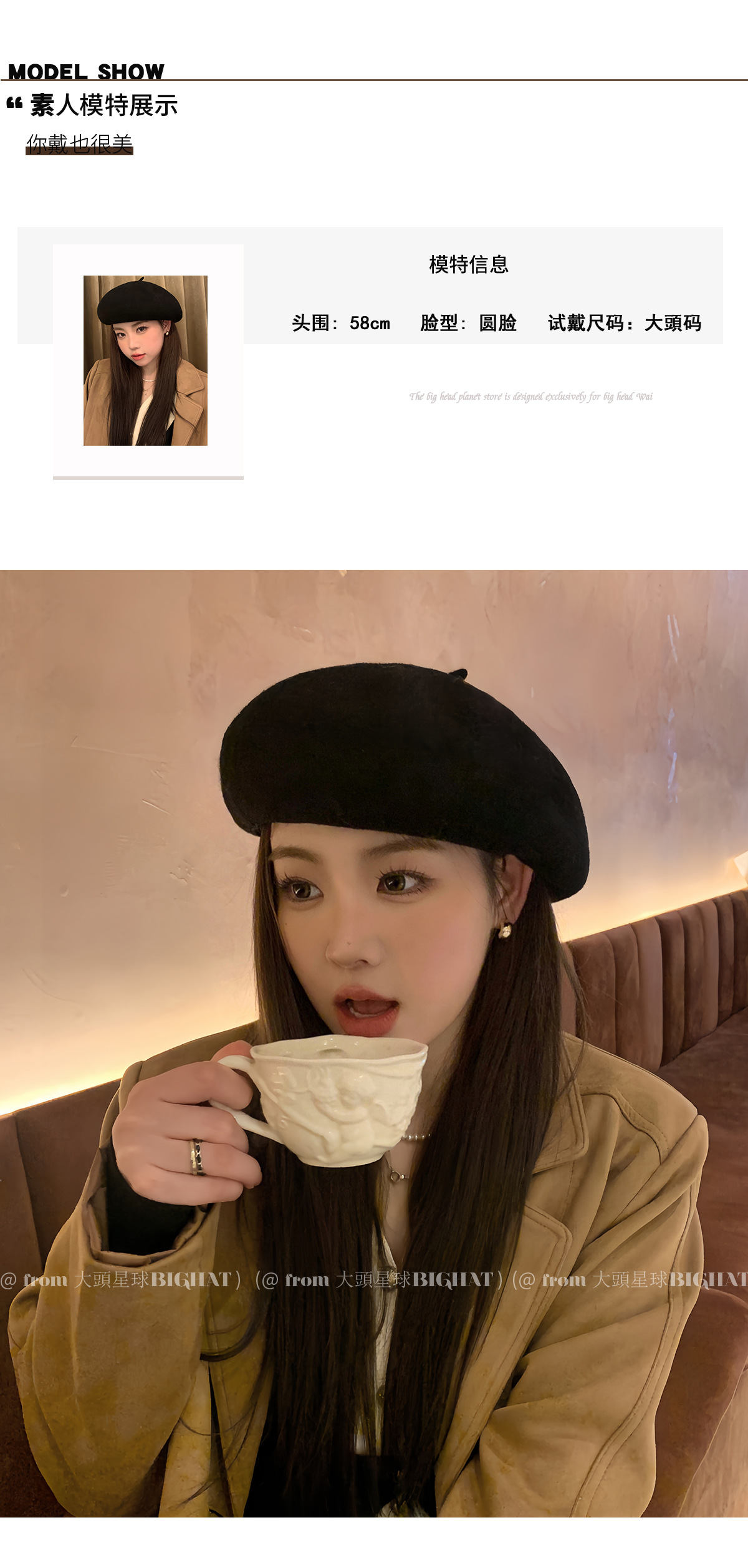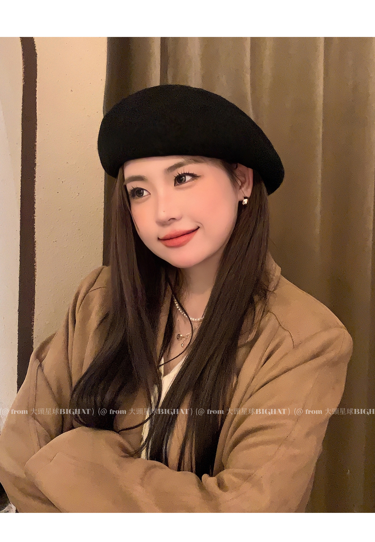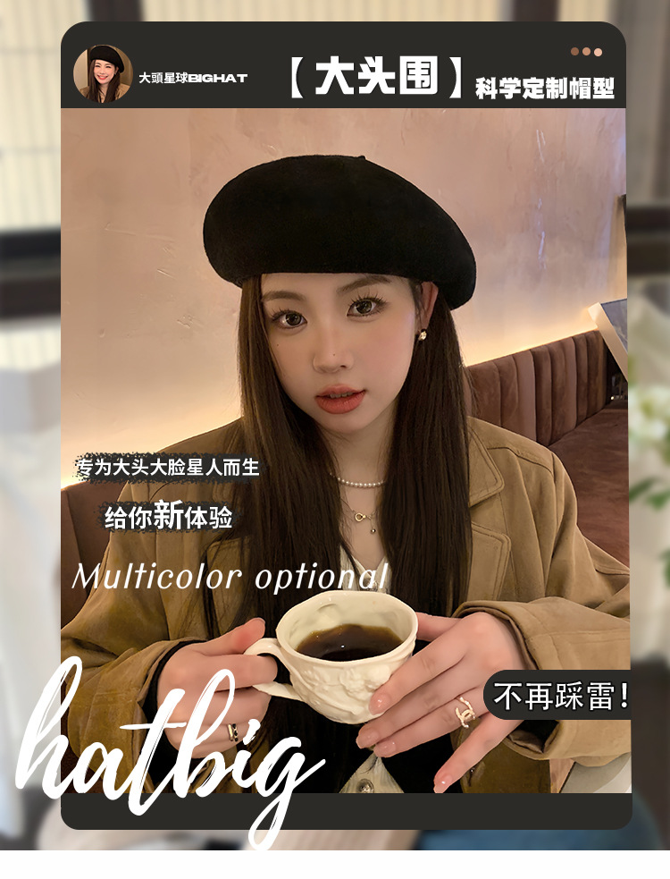 큰 머리 행성 큰 머리 둘레 베레모 큰 둥근 얼굴 적합한 모자 2024 새로운 가을과 겨울 화가 모자스토어 가기