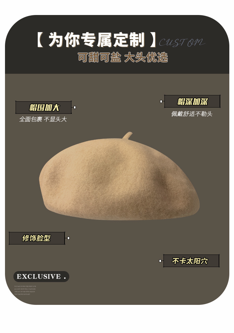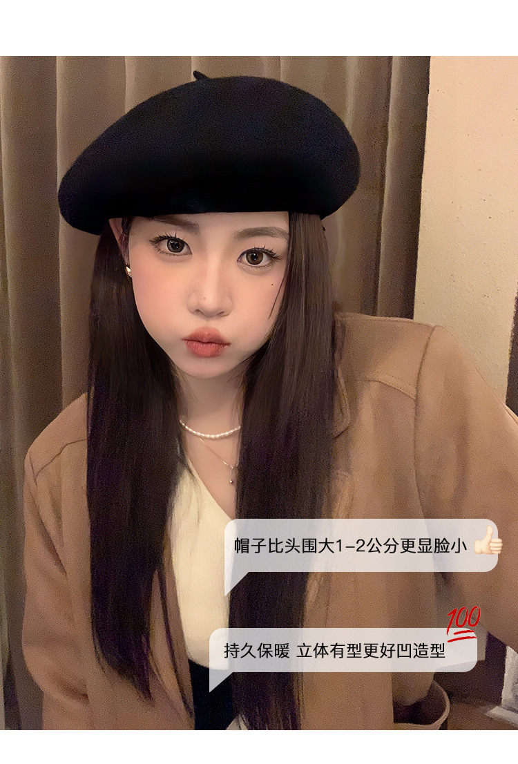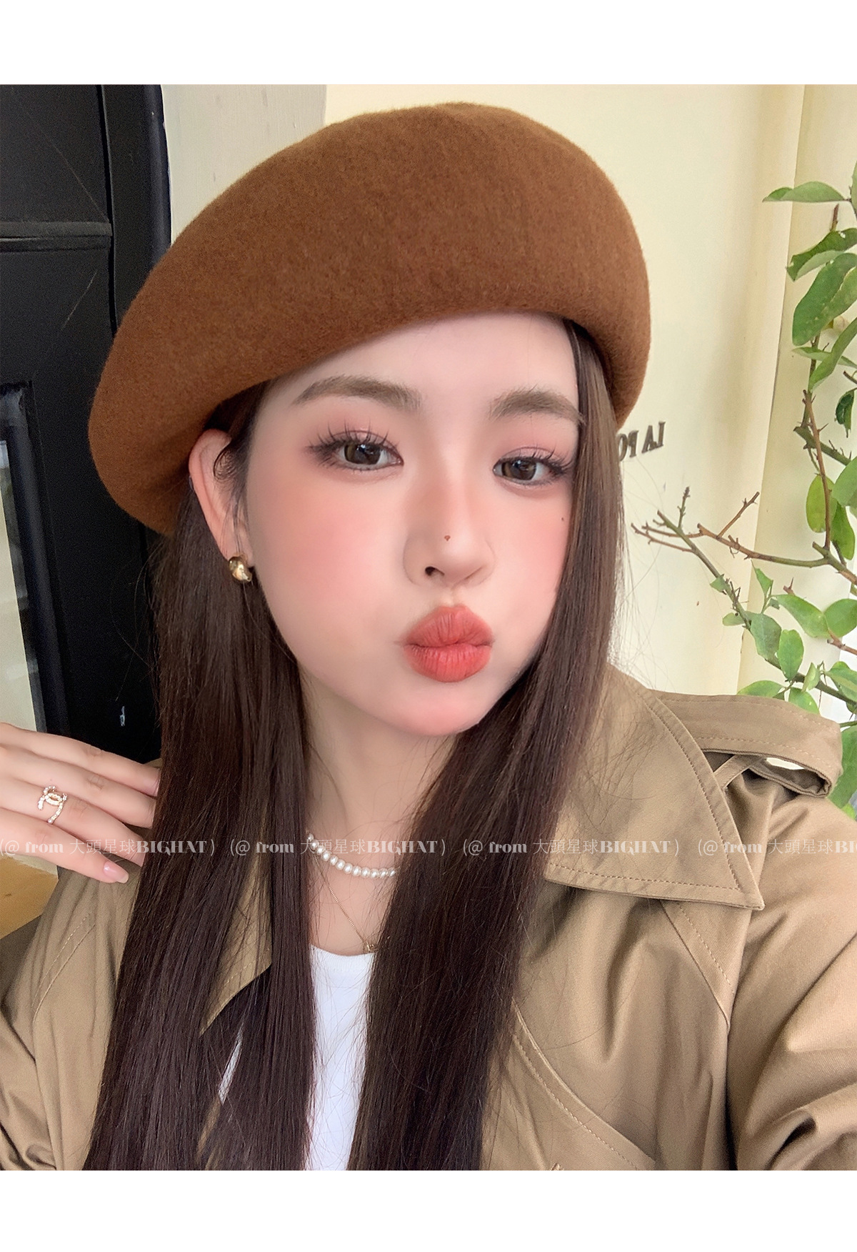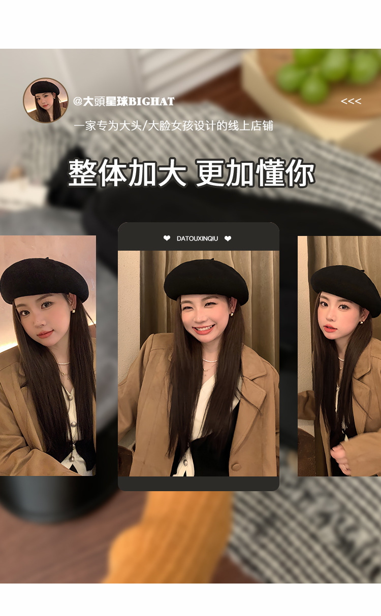 큰 머리 행성 큰 머리 둘레 베레모 큰 둥근 얼굴 적합한 모자 2024 새로운 가을과 겨울 화가 모자스토어 가기