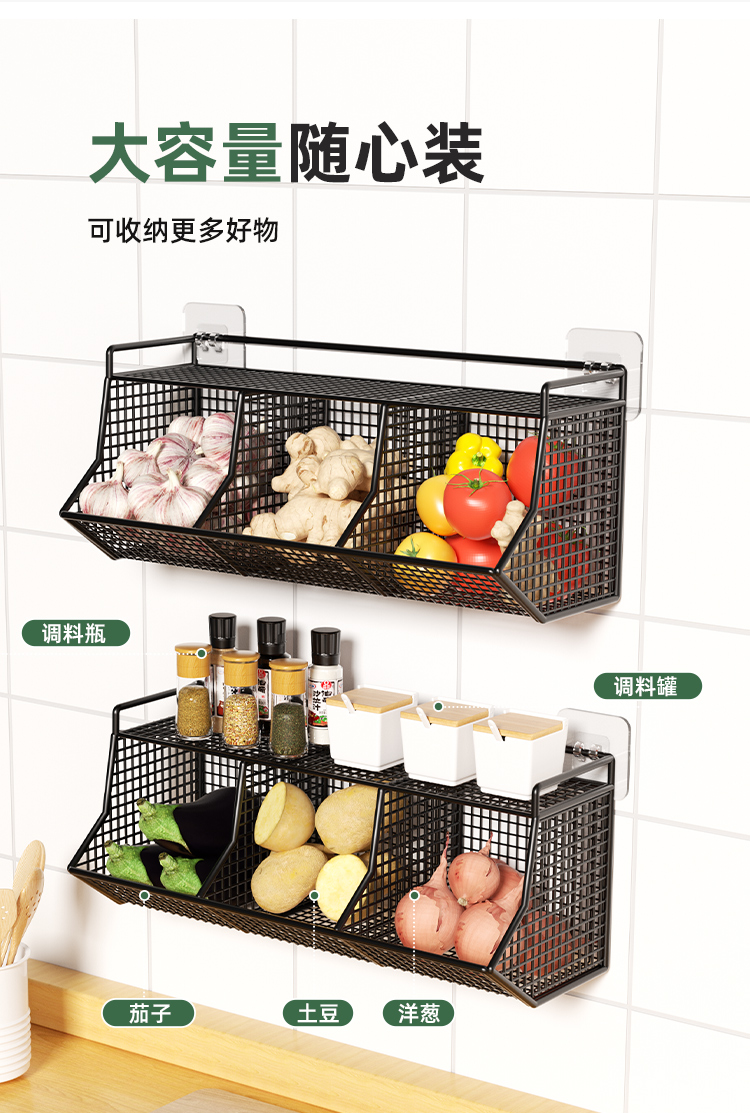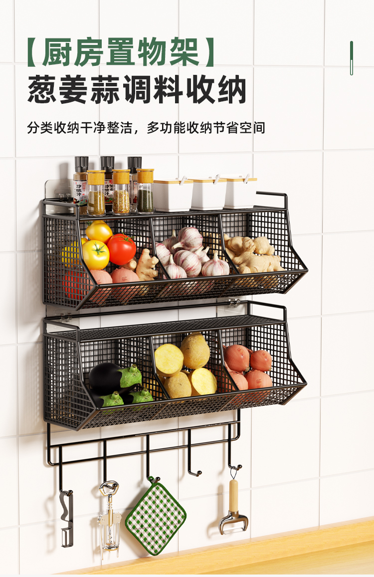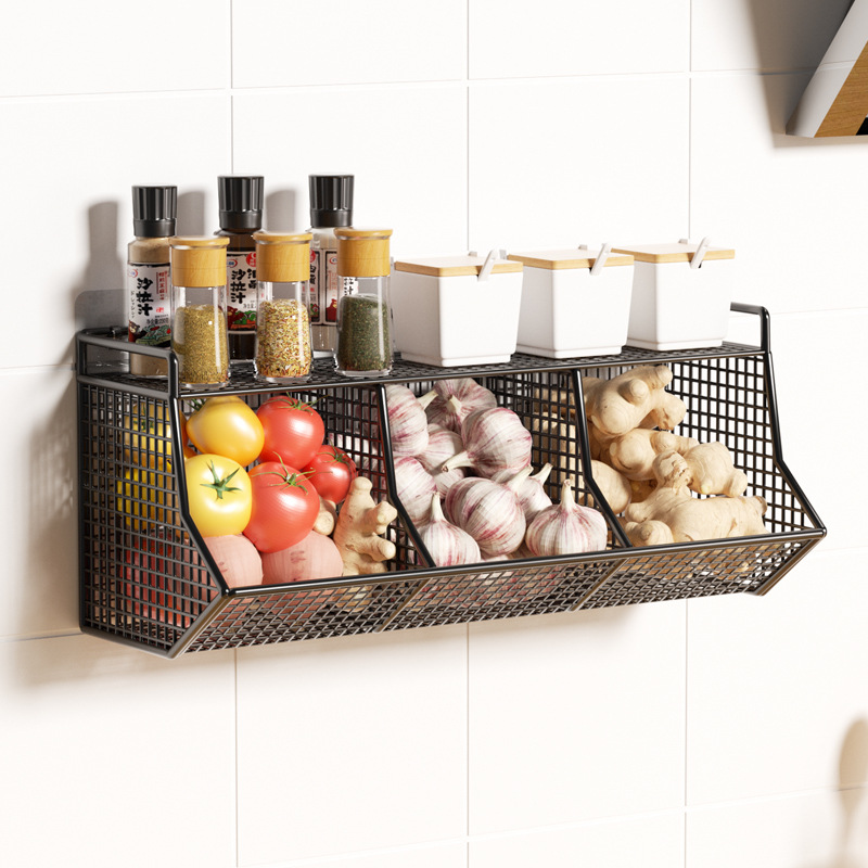 스칼론, 생강 및 마늘 저장 바구니 주방 보관 랙 생강과 마늘 벽걸이 걸이 바구니 야채 바구니 향신료 상자 벽에 걸려있는 비문스토어 가기