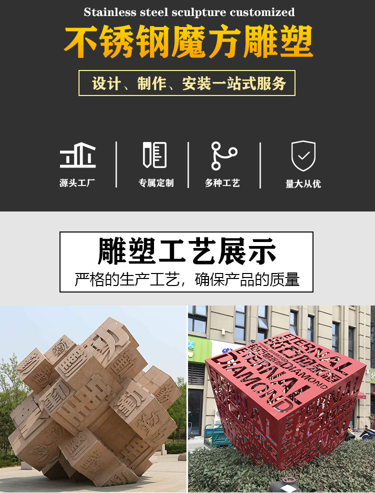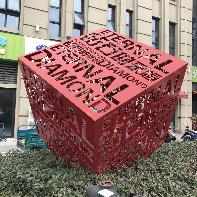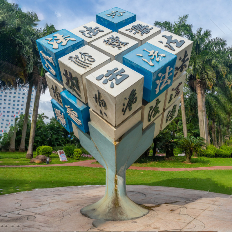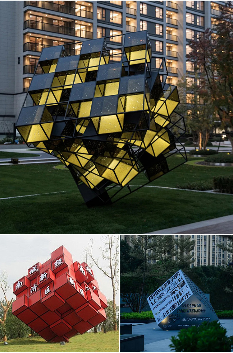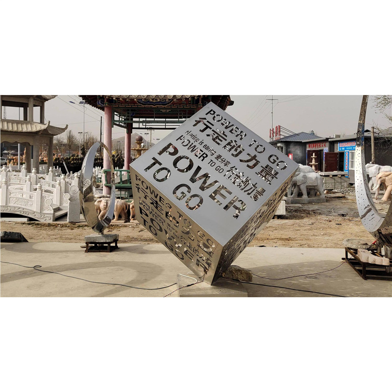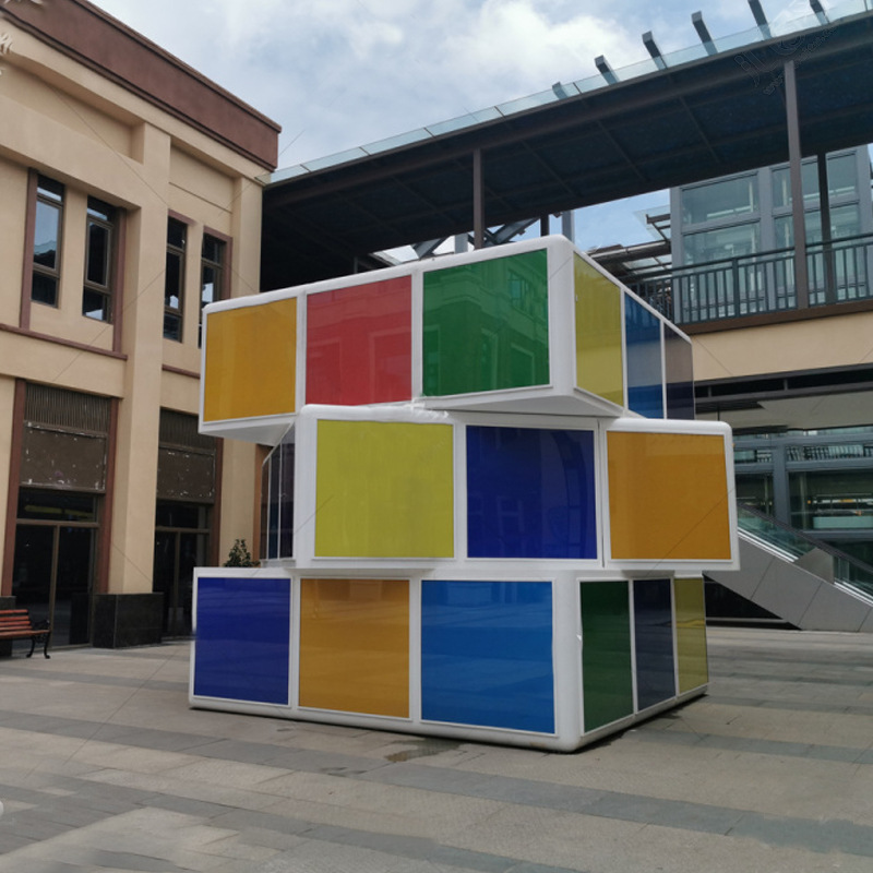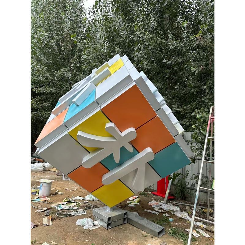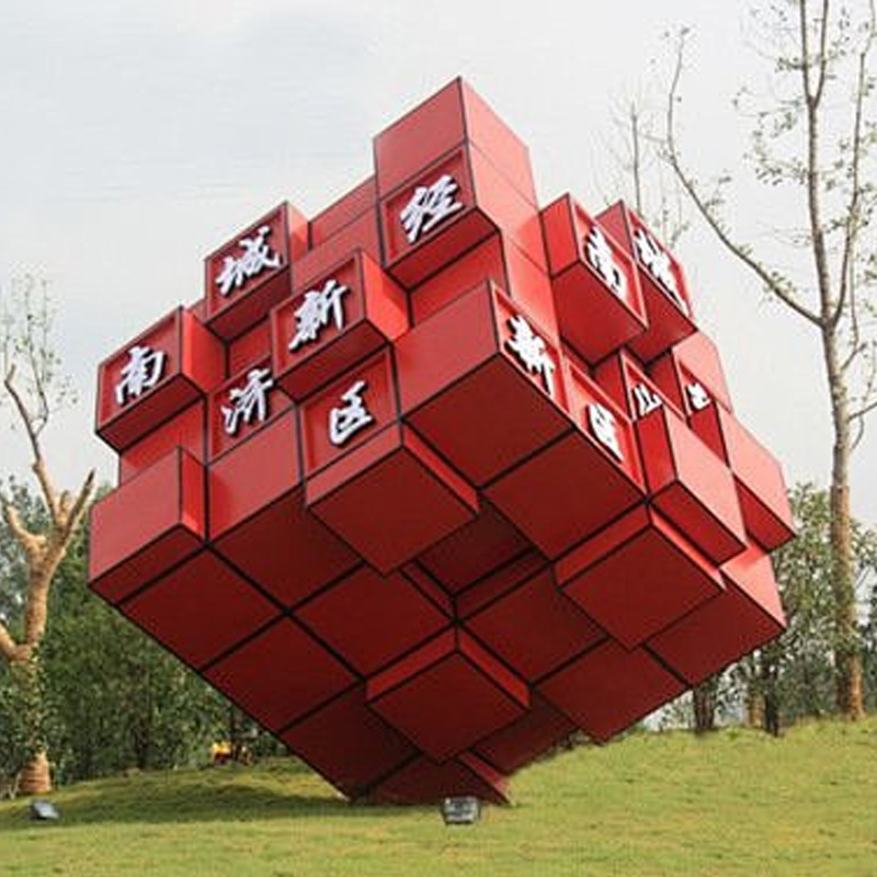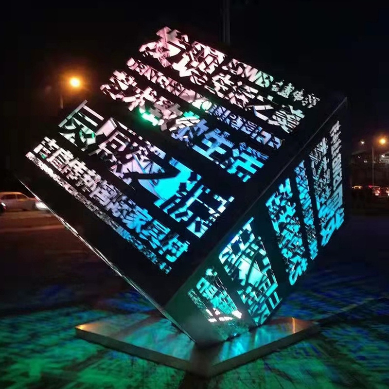 스테인레스 스틸 루빅스 큐브 조각 큐브 빈 발광 편지 도시 로고 금속 제작 풍경 디지털 장식품스토어 가기