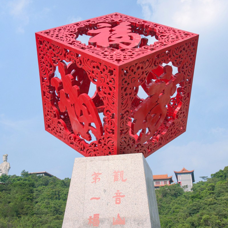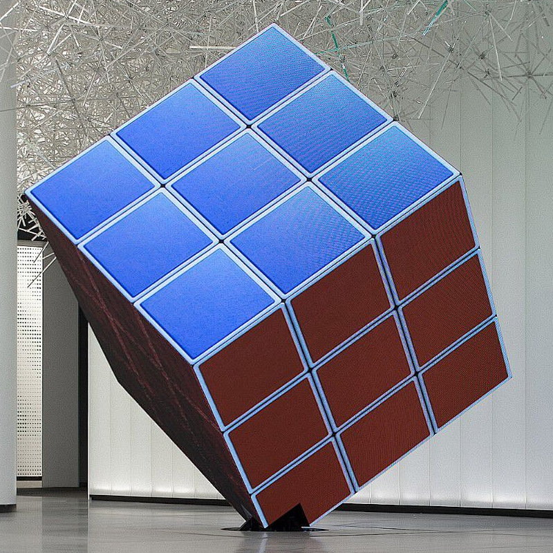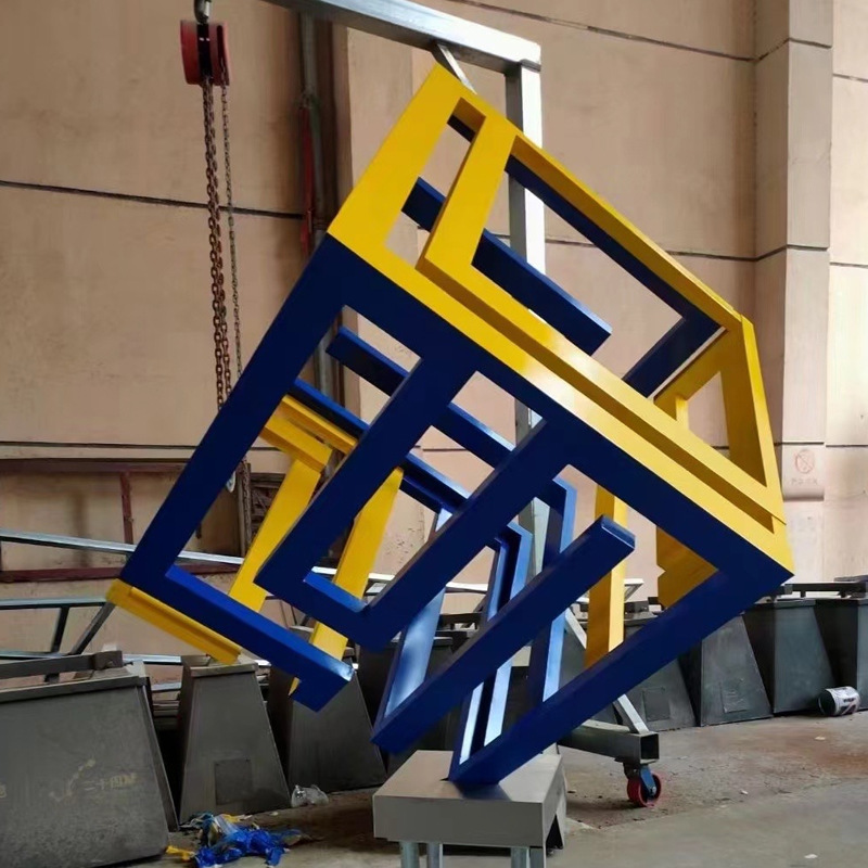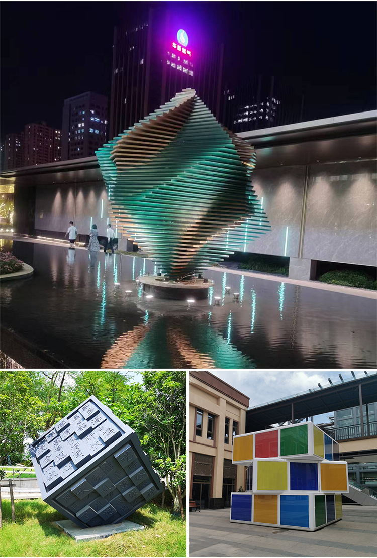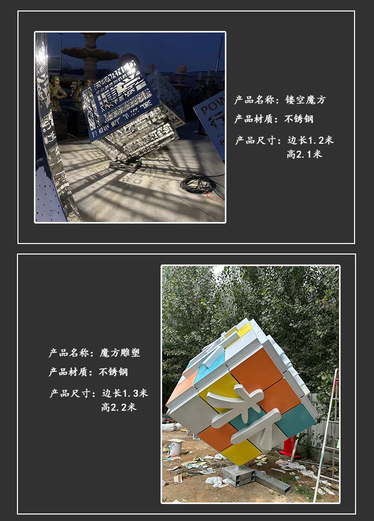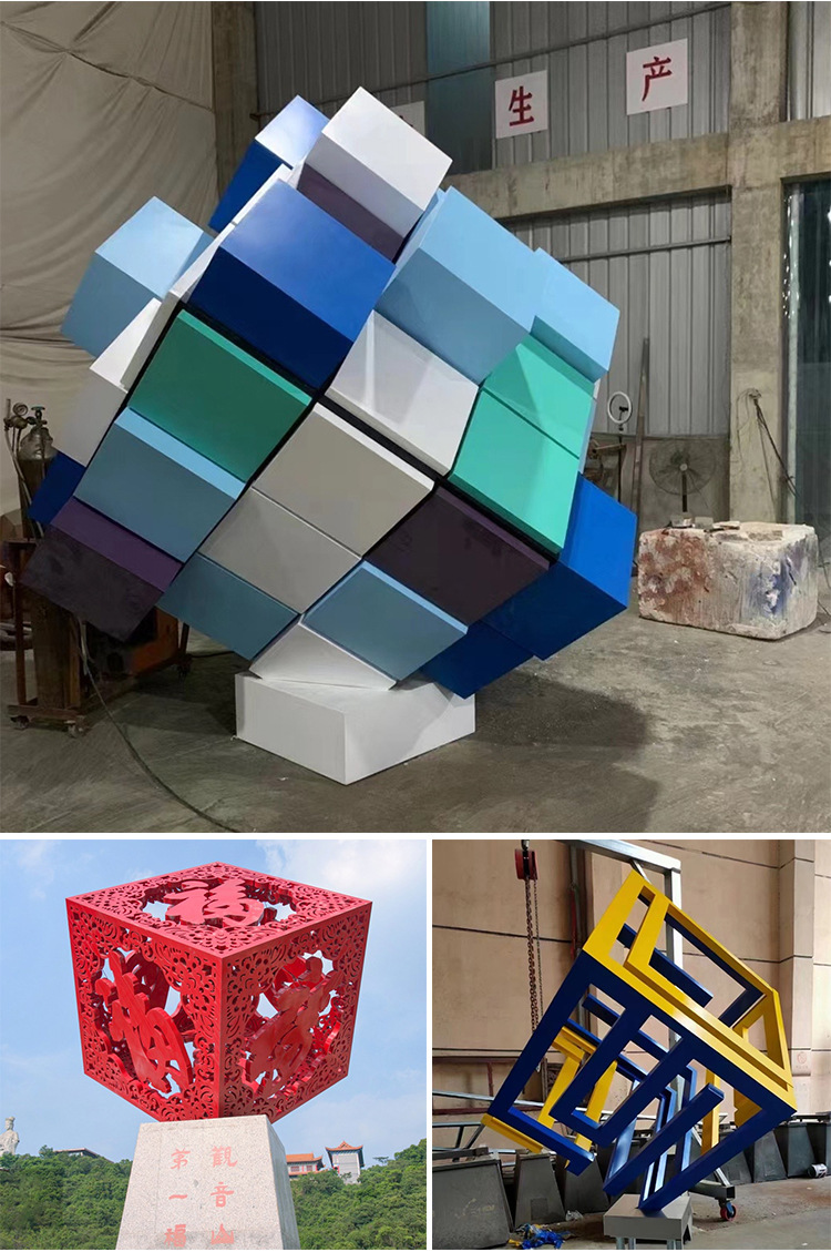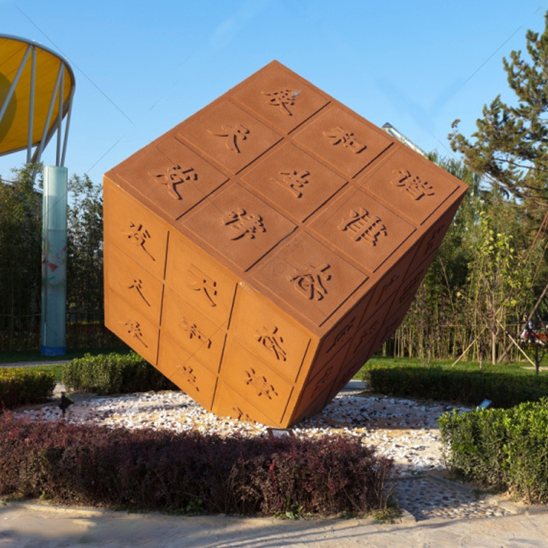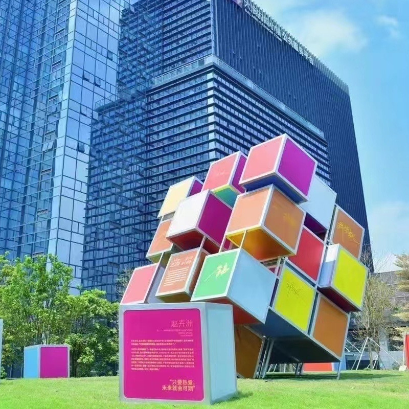 스테인레스 스틸 루빅스 큐브 조각 큐브 빈 발광 편지 도시 로고 금속 제작 풍경 디지털 장식품스토어 가기