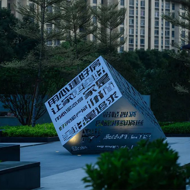 스테인레스 스틸 루빅스 큐브 조각 큐브 빈 발광 편지 도시 로고 금속 제작 풍경 디지털 장식품