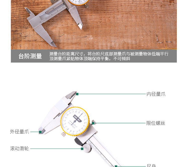 델리 버니어 캘리퍼 다이얼 0-150mm 스테인레스 스틸 산업 등급 기계 버니어 캘리퍼 다이얼 DL9