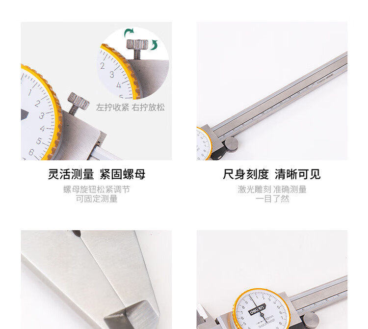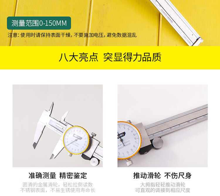델리 버니어 캘리퍼 다이얼 0-150mm 스테인레스 스틸 산업 등급 기계 버니어 캘리퍼 다이얼 DL9스토어 가기