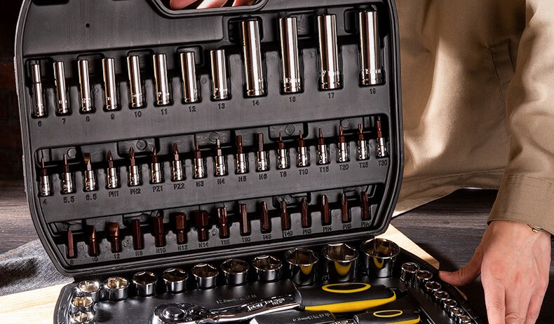 Deli 86 개 가정용 소켓 래칫 렌치 세트 Dafei Xiaofei 종합 자동차 수리 도구 상자 세트스토어 가기