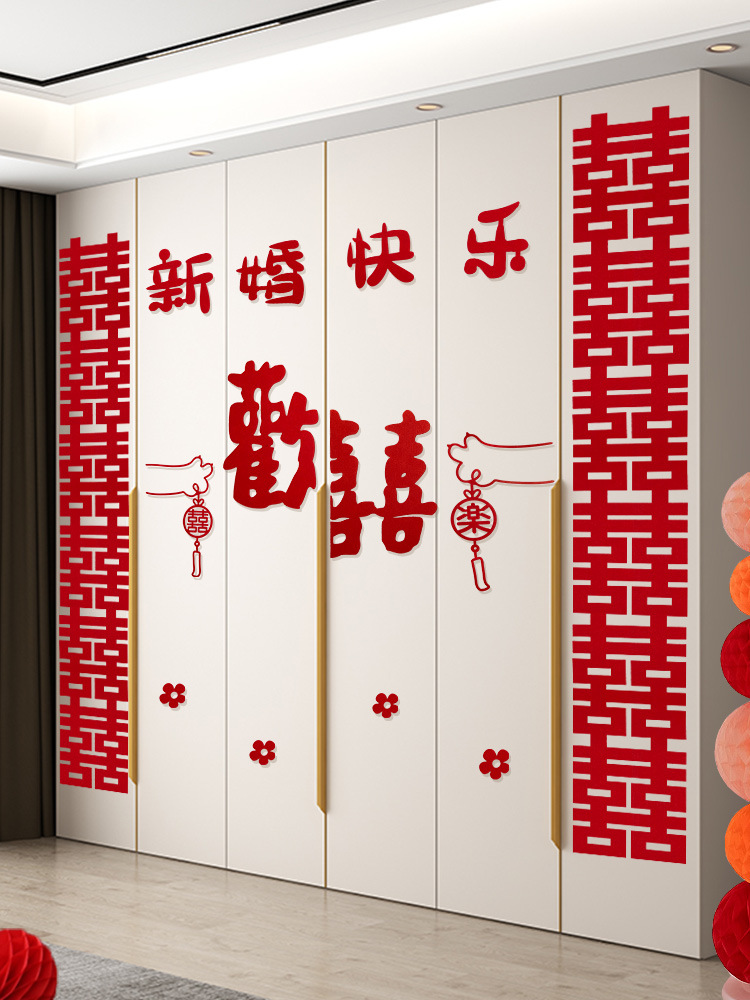 결혼식 장식 세트 옷장 장식 여자의 방 침실 남자의 캐비닛 결혼식 행복한 단어 스티커 호닝 비문스토어 가기