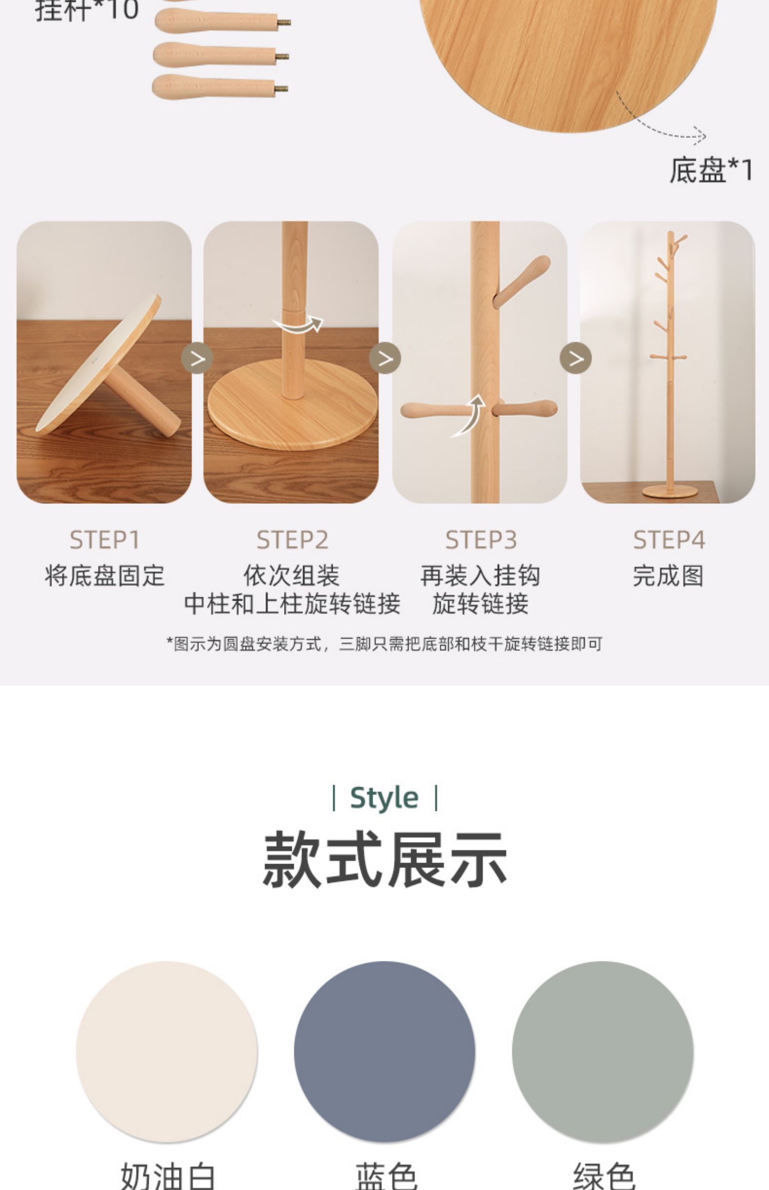 크림 스타일 옷걸이 바닥 걸이 단단한 우드 코트 랙 가정용 침실 수직 너도밤 나무 가방 교수형 옷스토어 가기