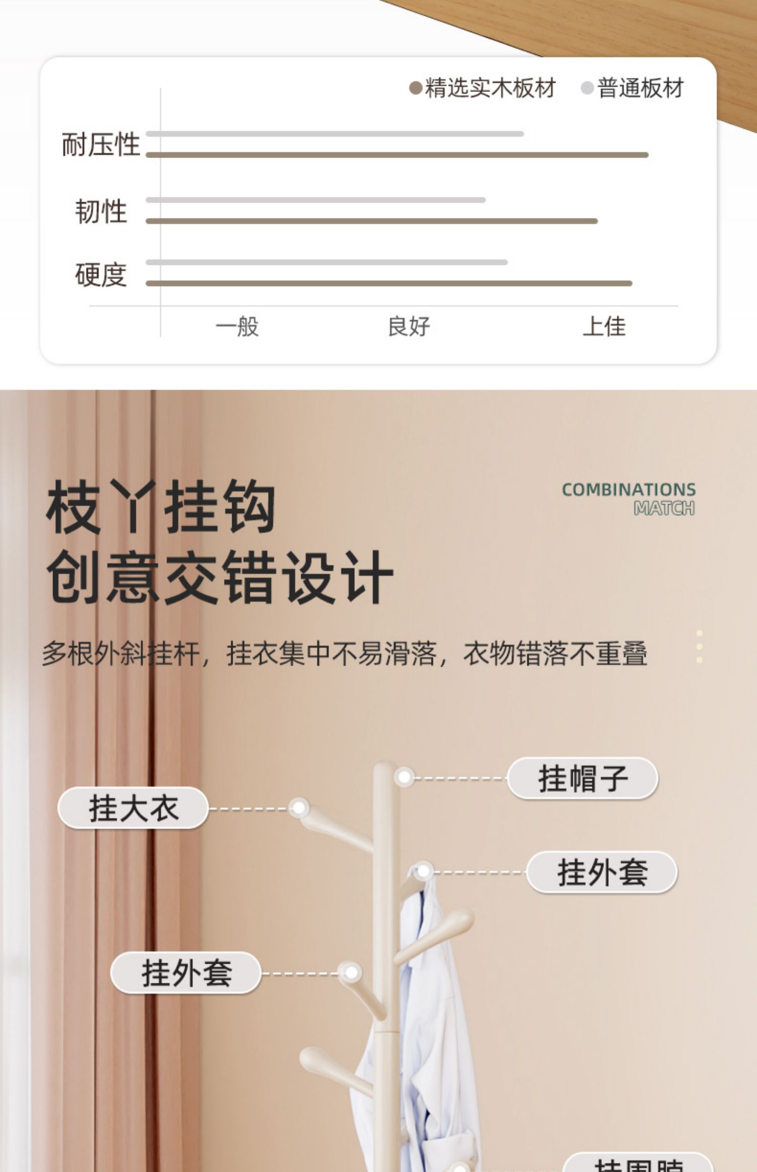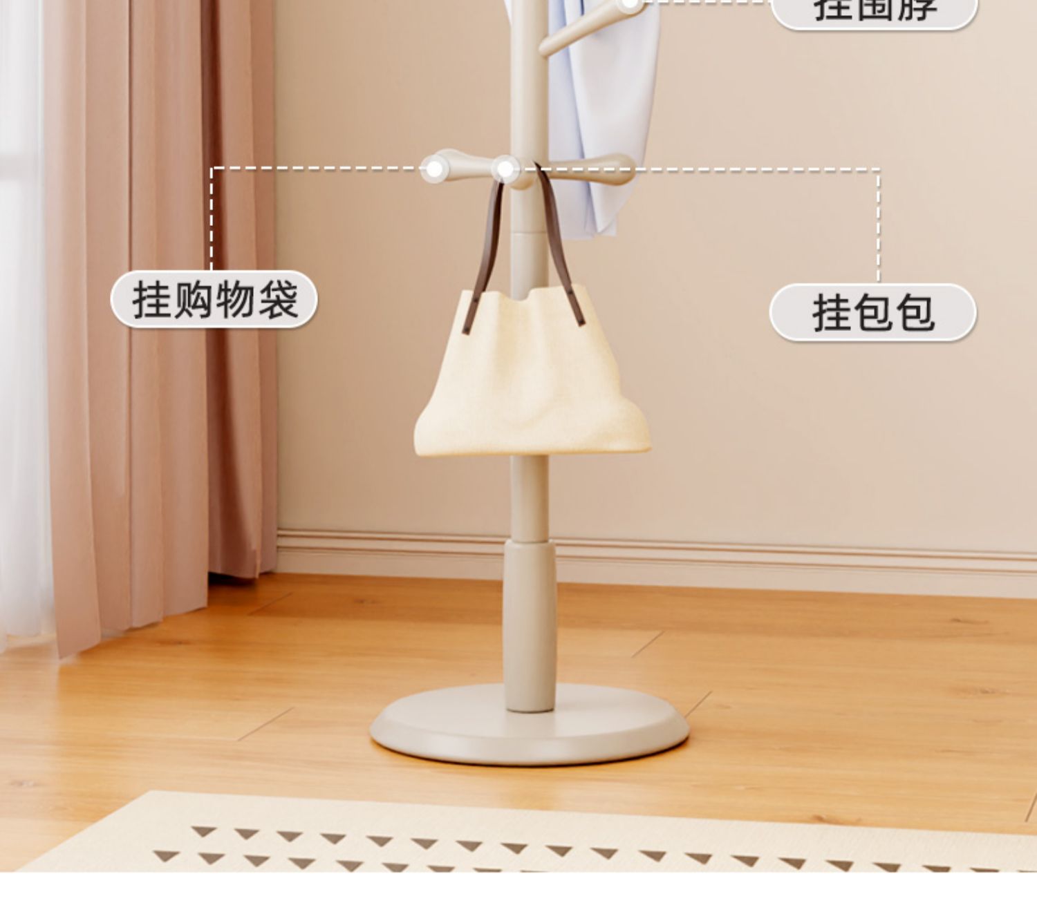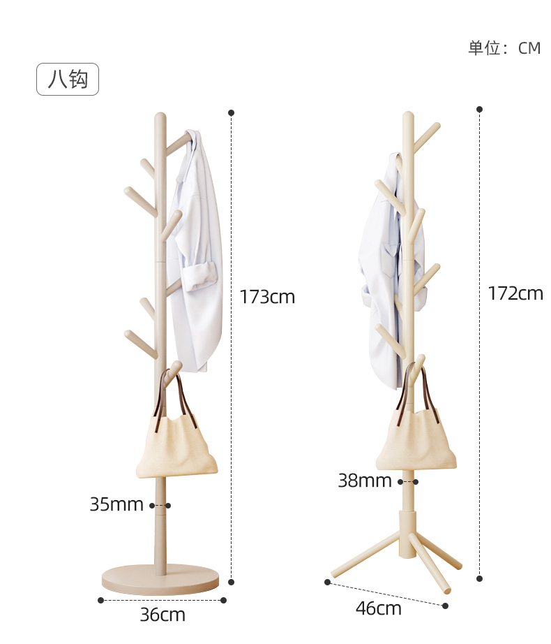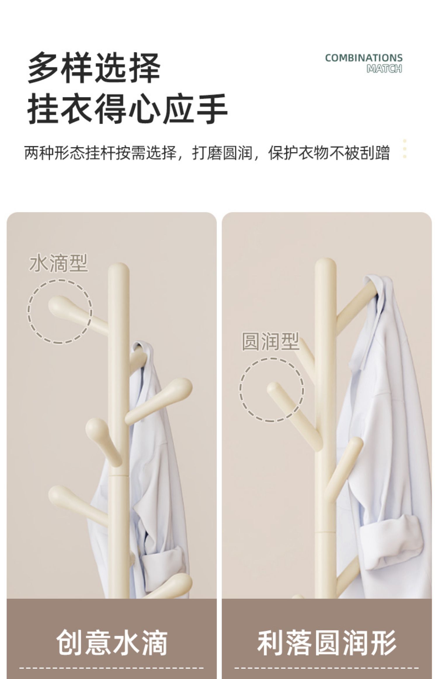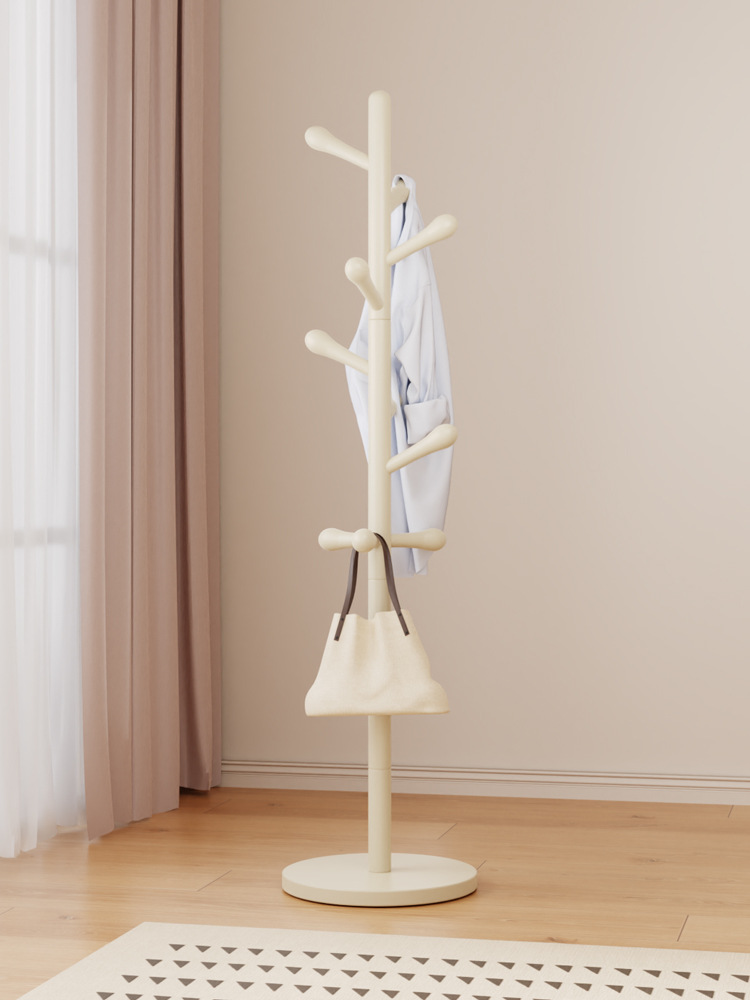 크림 스타일 옷걸이 바닥 걸이 단단한 우드 코트 랙 가정용 침실 수직 너도밤 나무 가방 교수형 옷