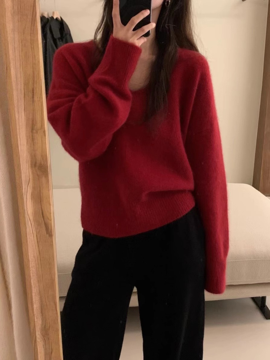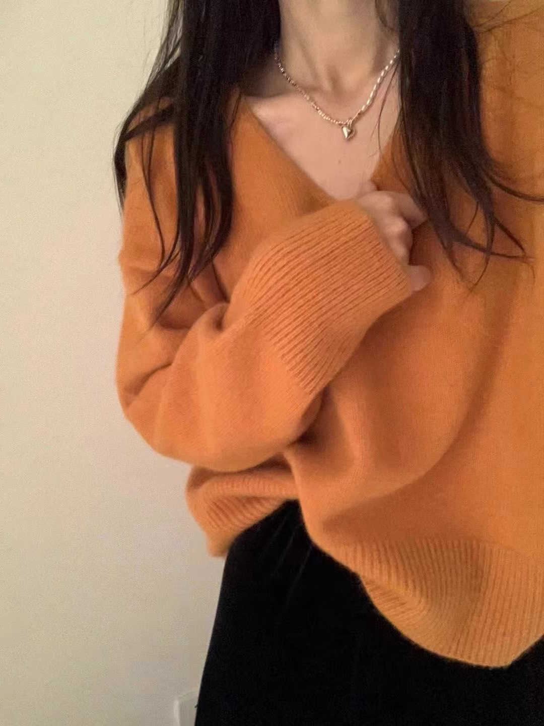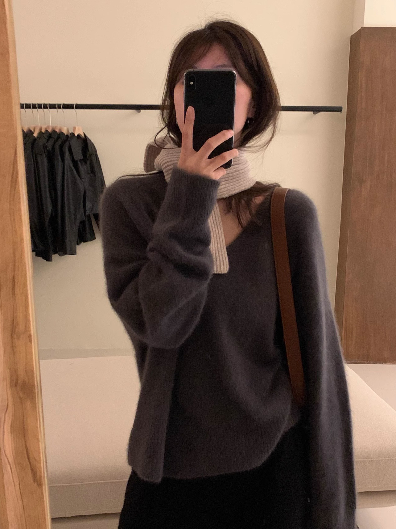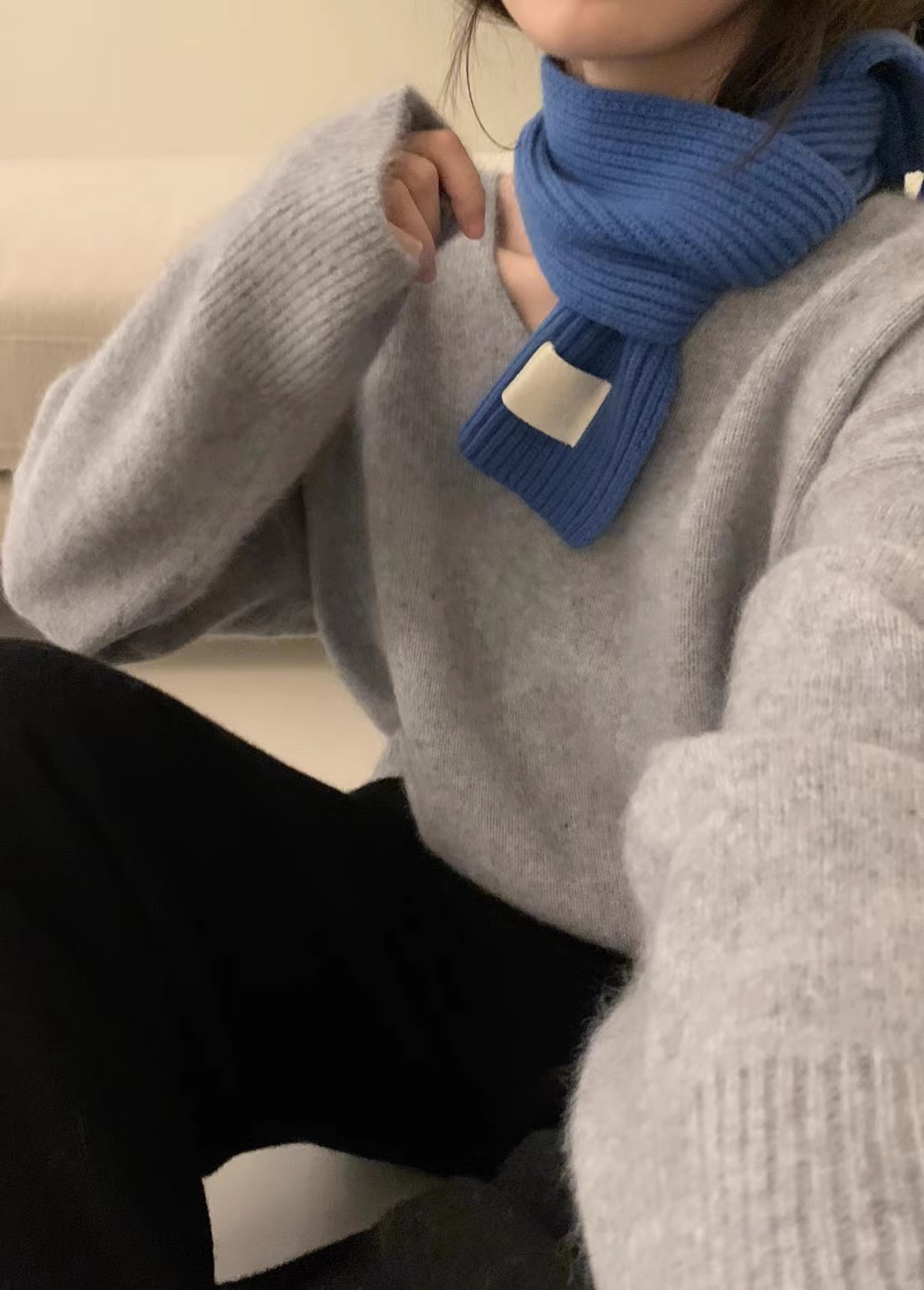 2024 소프트 왁스 면 공작 블루 V-Neck 니트 내복 여성용 두꺼운 가을과 겨울 느슨한 게으른 스웨터 풀오버 탑