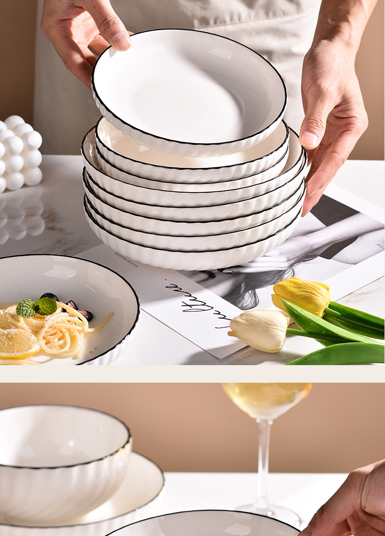 플레이트 접시 가정용 2024 새로운 세라믹 라운드 딥 플레이트 접시 간단한 빛 럭셔리 7 인치 8 인치 Heng Ming