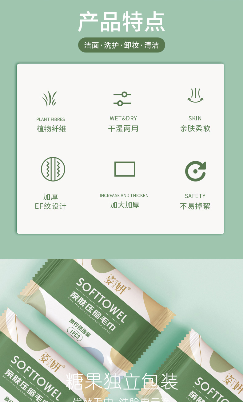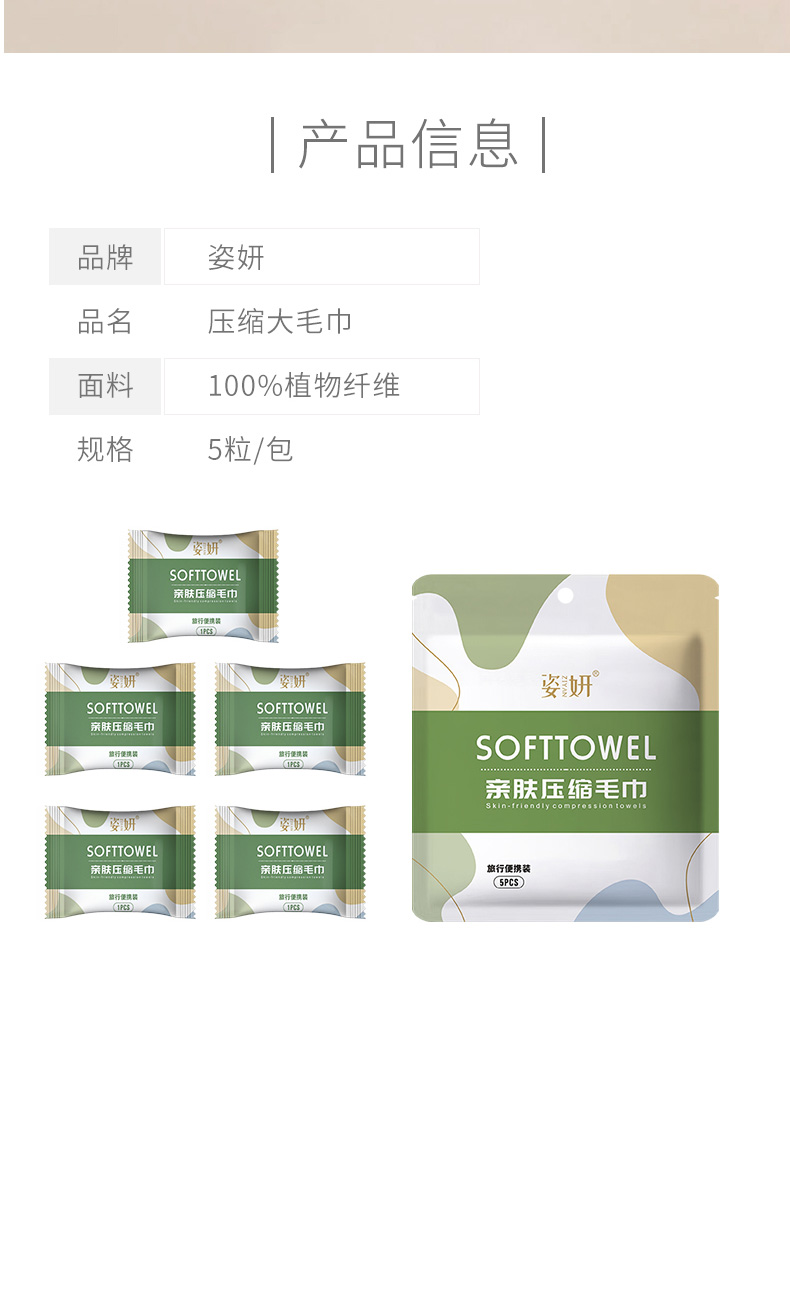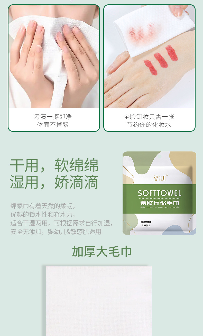 호닝없이 여행 휴대용 목욕 얼굴 타월을 위해 입자가 확대 된 일회용 압축 수건 및 두껍게 된 부드러운면 타월