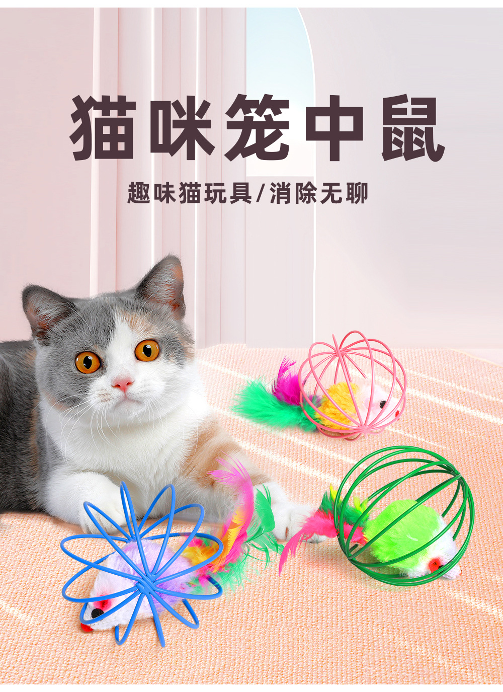 케이지 마우스 고양이 장난감 컬러 시뮬레이션 깃털 꼬리 애타게 고양이 자기 안녕 텀블러 벨 마우스 장난감 공 도매스토어 가기