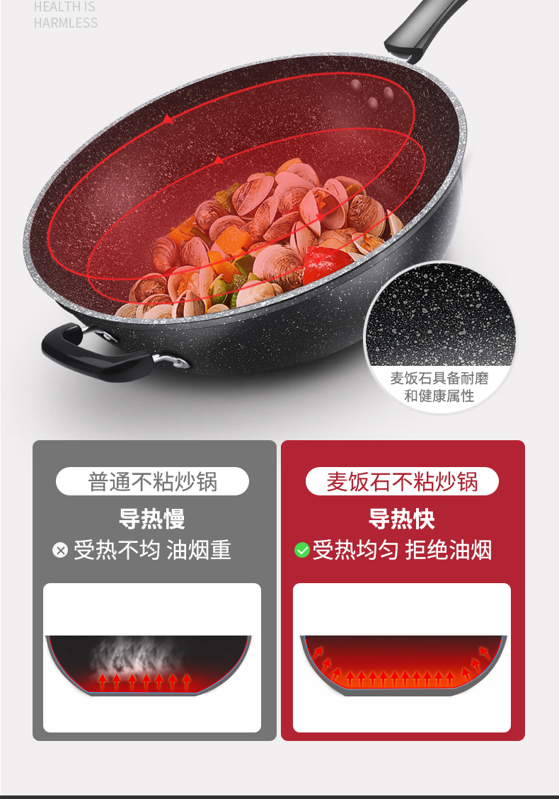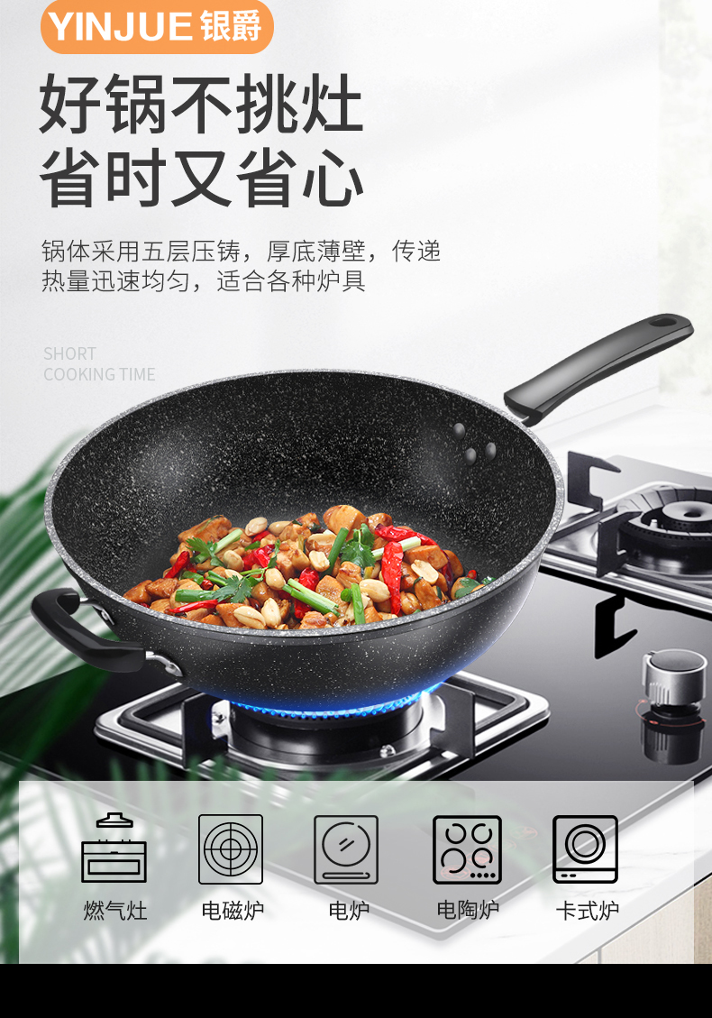 팬 가스 스토브 Heng Ming에 적합한 Maifan Stone Non Stick Pan 가정용 Wok Wok Wok Iron Pan 유도 쿠커