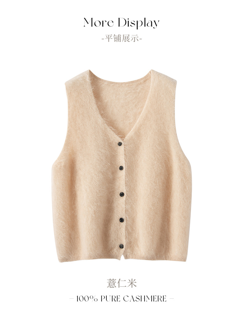 가을과 겨울 브러쉬 조끼 100% 순수 캐시미어 여성용 V 넥 브러쉬 조끼 양복 조끼 민소매 재킷 코트 접혀