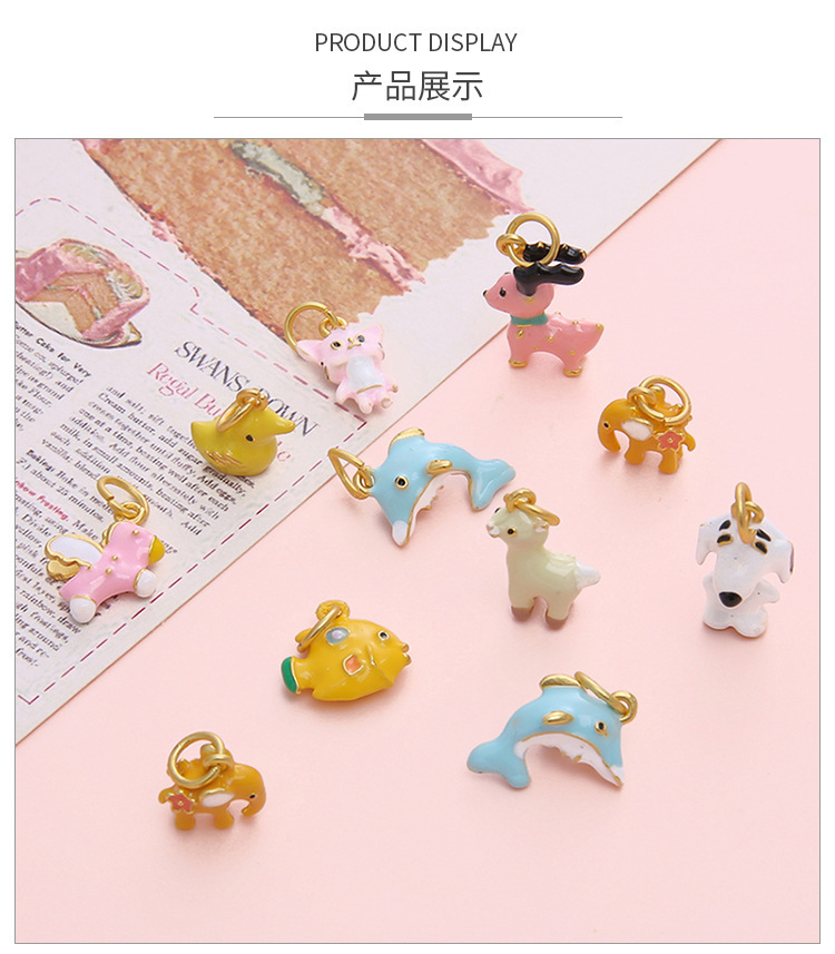 컬러 합금 오일 드롭 귀여운 작은 동물 펜던트 DIY 수제 손 끈 팔찌 가방 펜던트 보석 액세서리 도매
