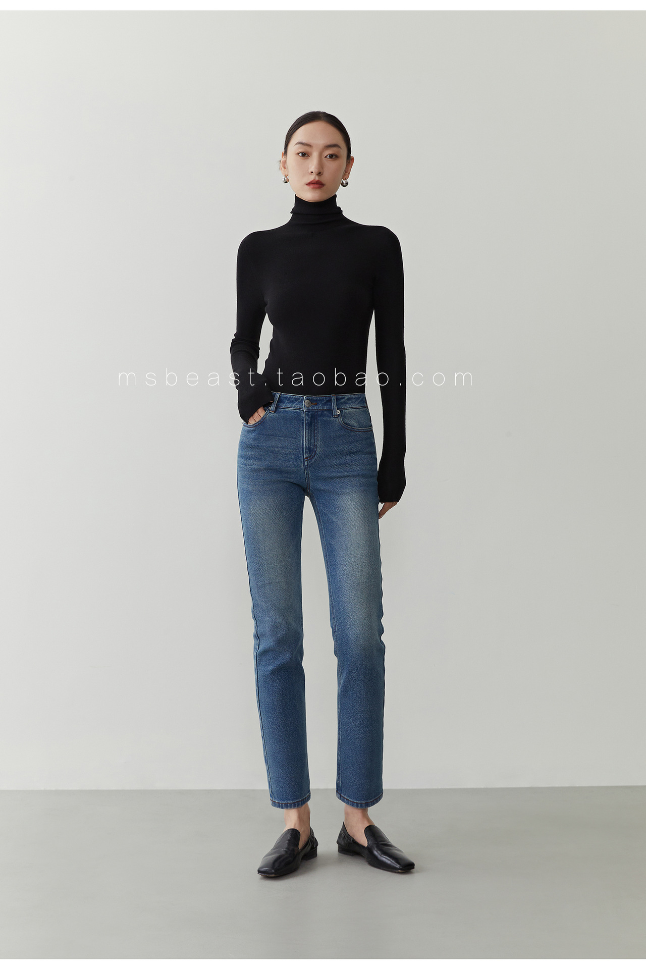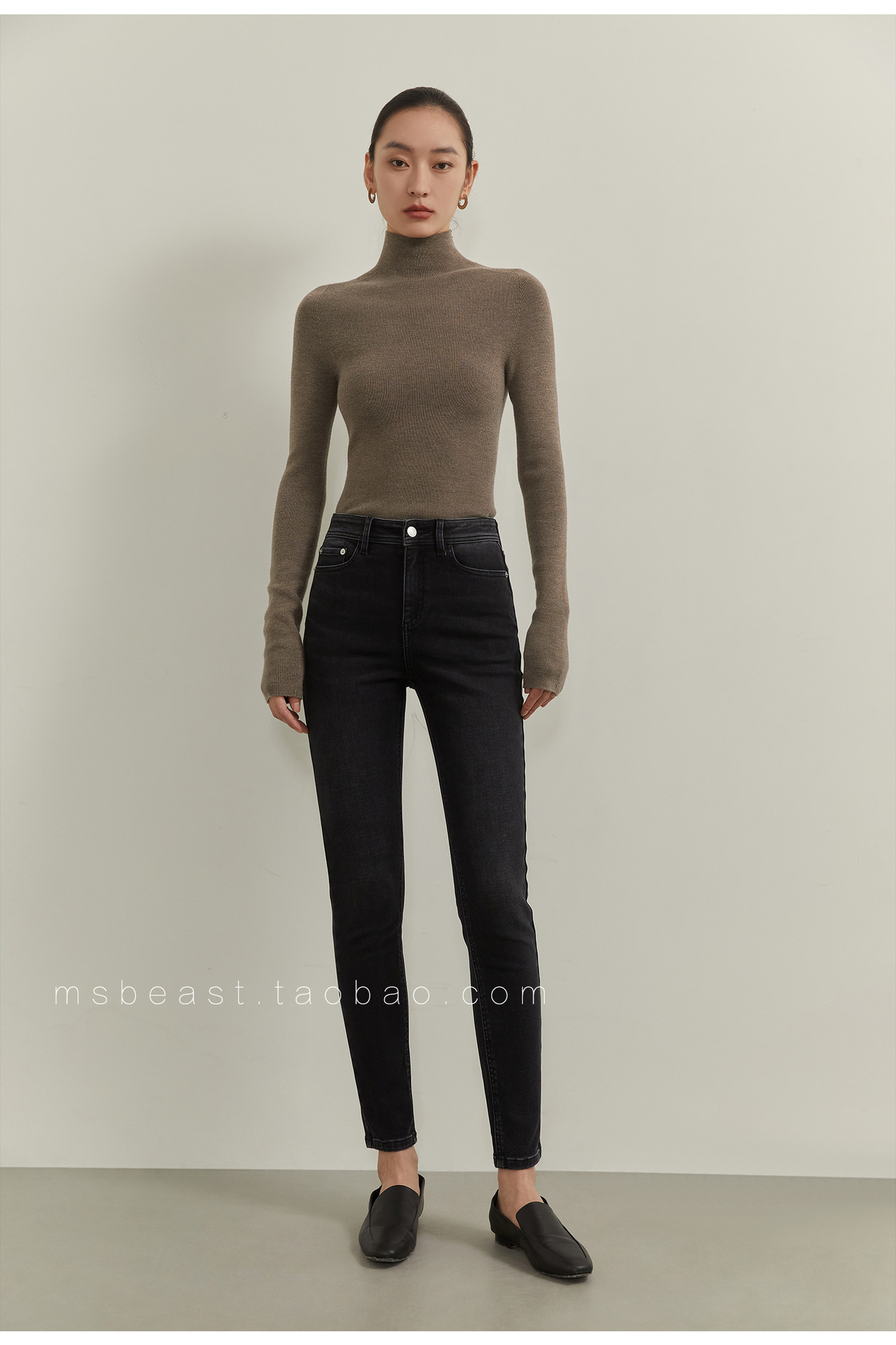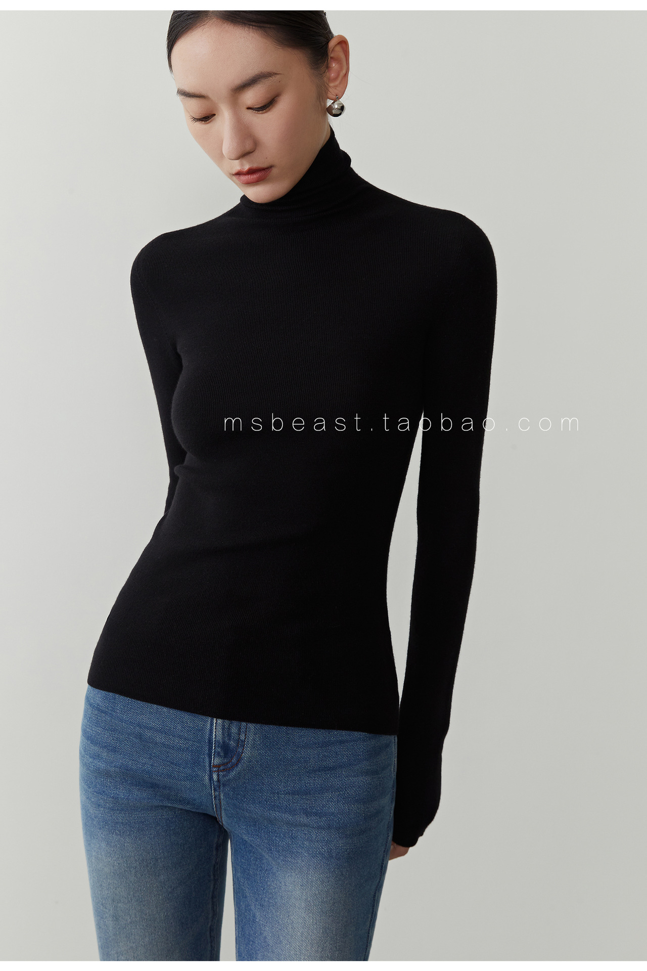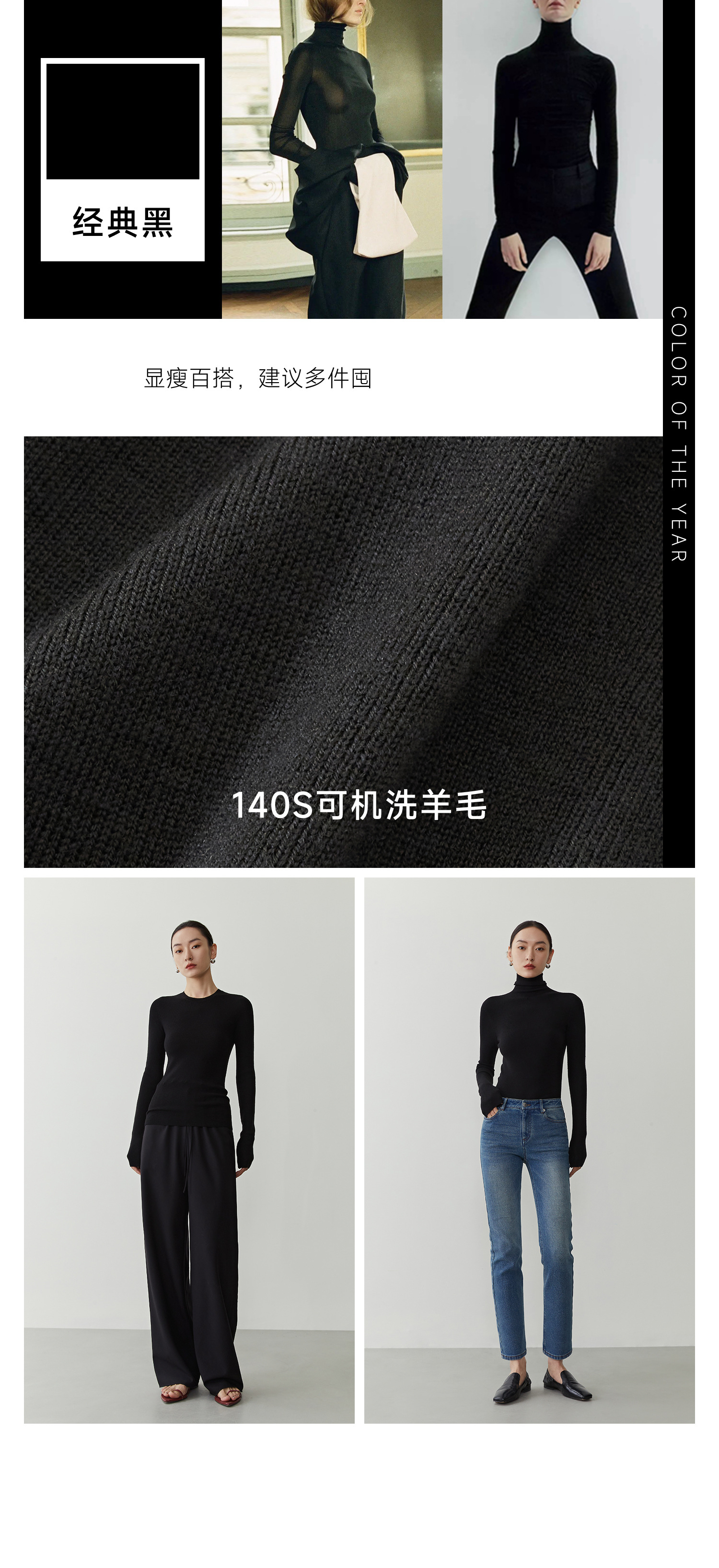 • 클래식 블랙(120S 두꺼운 하프 터틀넥) [소모 울 100%]