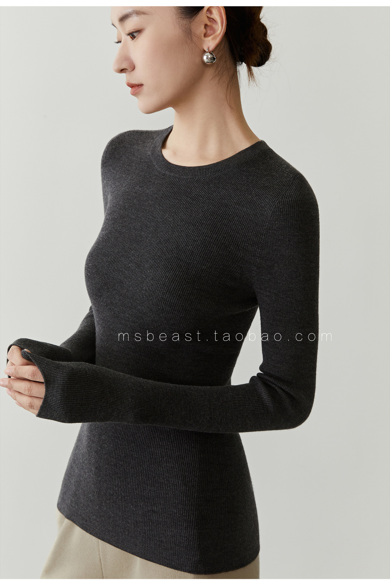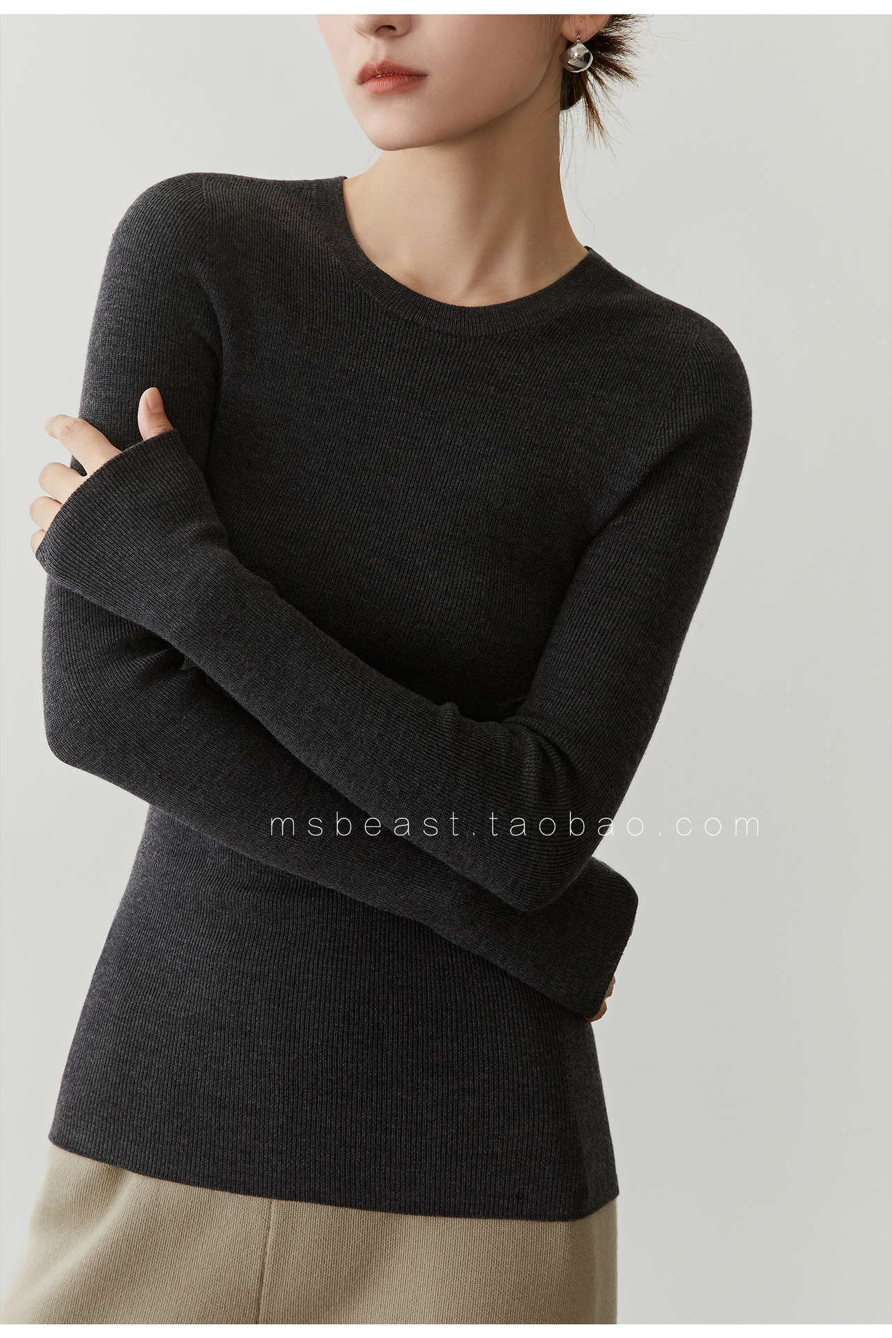 • 혼합 컬러 카본 그레이(140S 라운드 넥) [소모 울 100%]