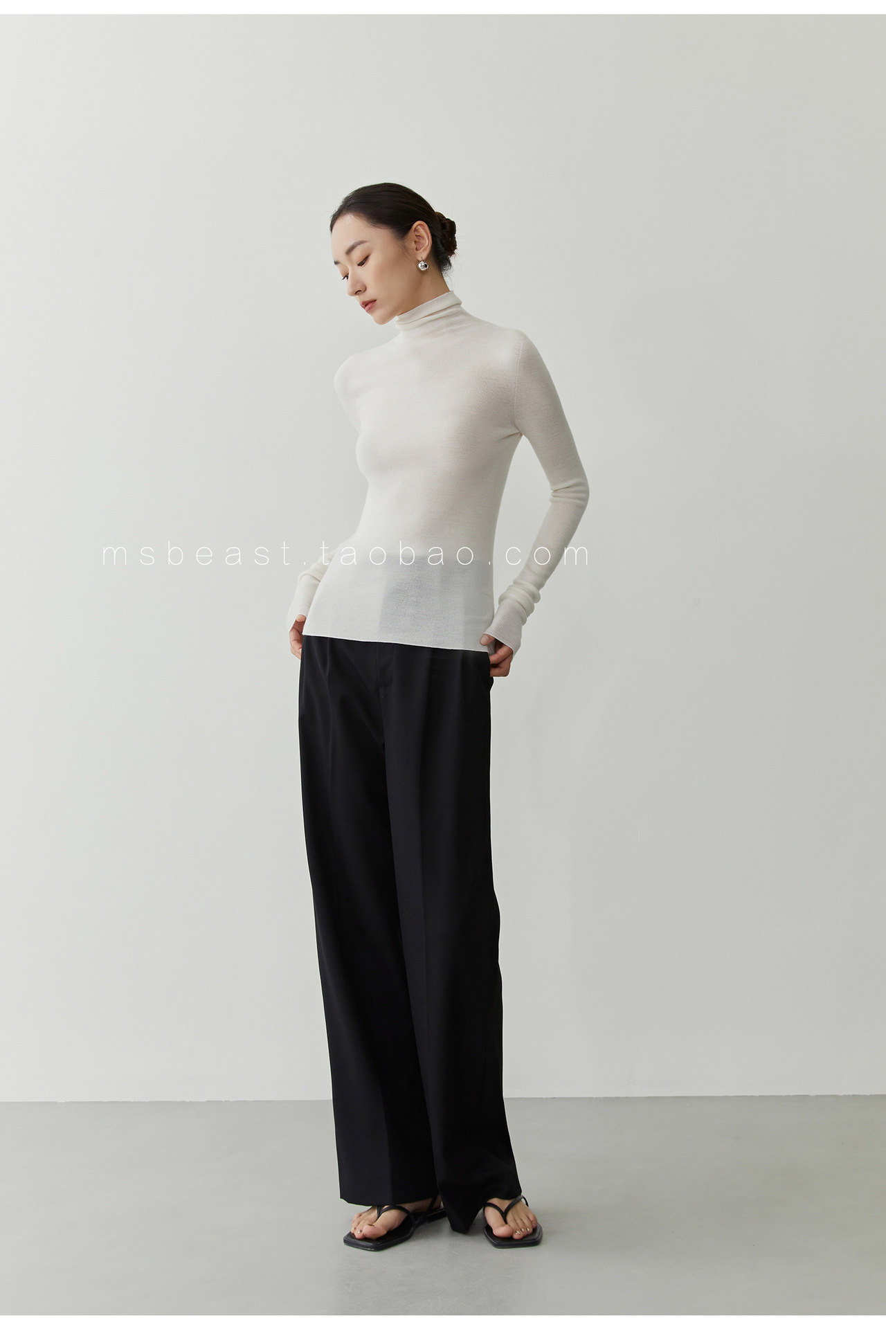 • 화이트(120S 두꺼운 하프 터틀넥) [소모 울 100%]