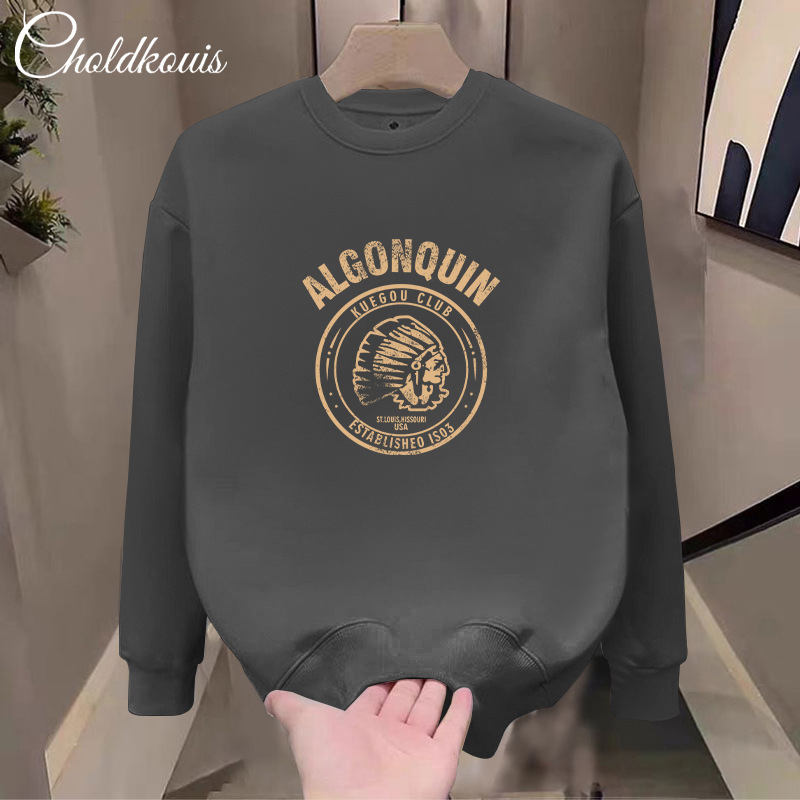 • 벨벳스타일의 다크그레이 라운드넥 스웨트셔츠-389【GL】