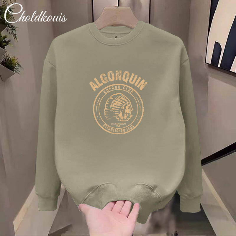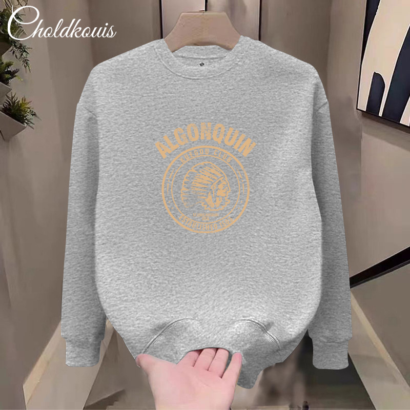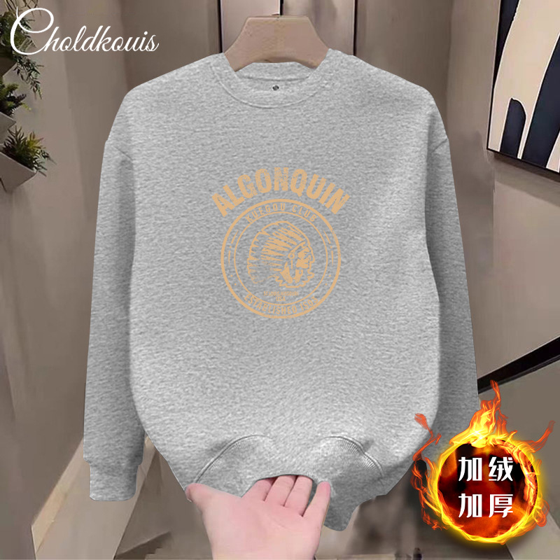 • 오트밀그레이 라운드넥 스웨트셔츠 플러스벨벳스타일-389【GL】