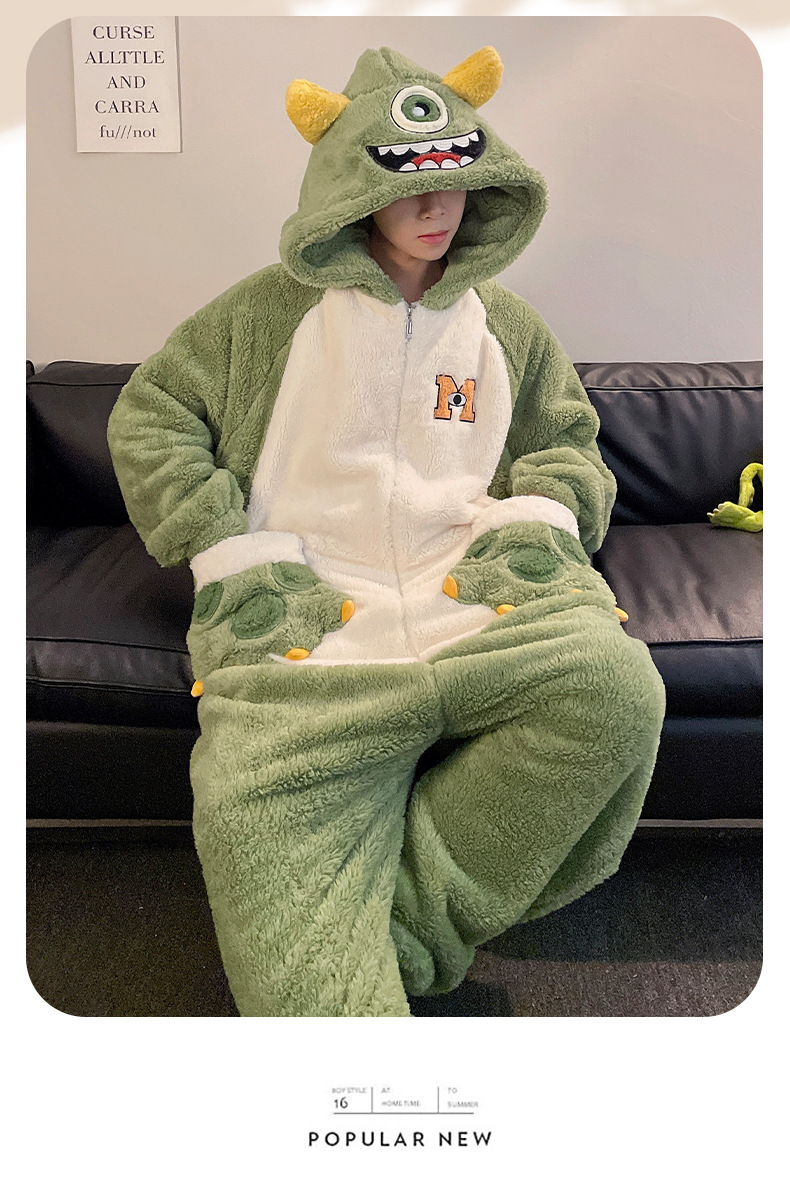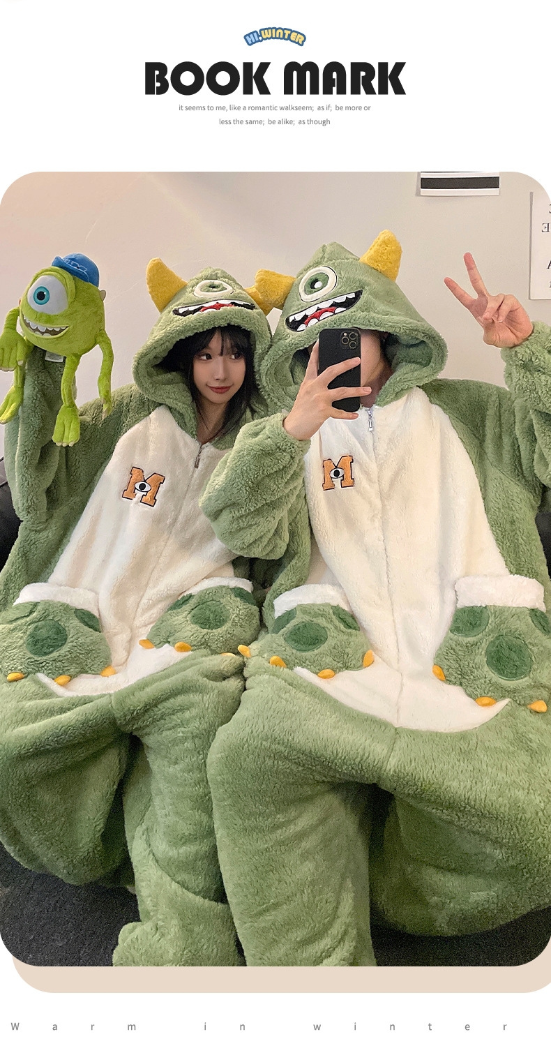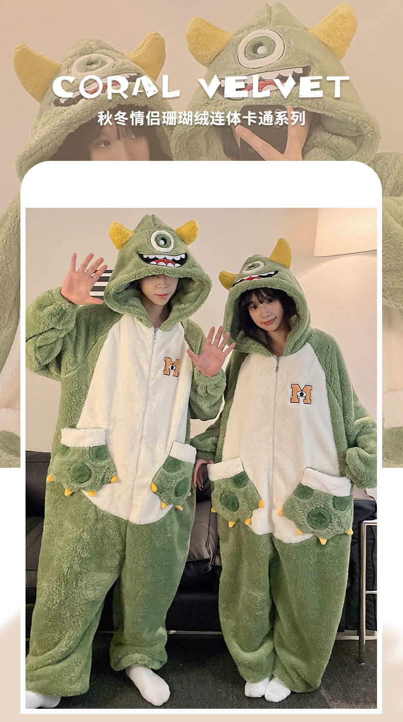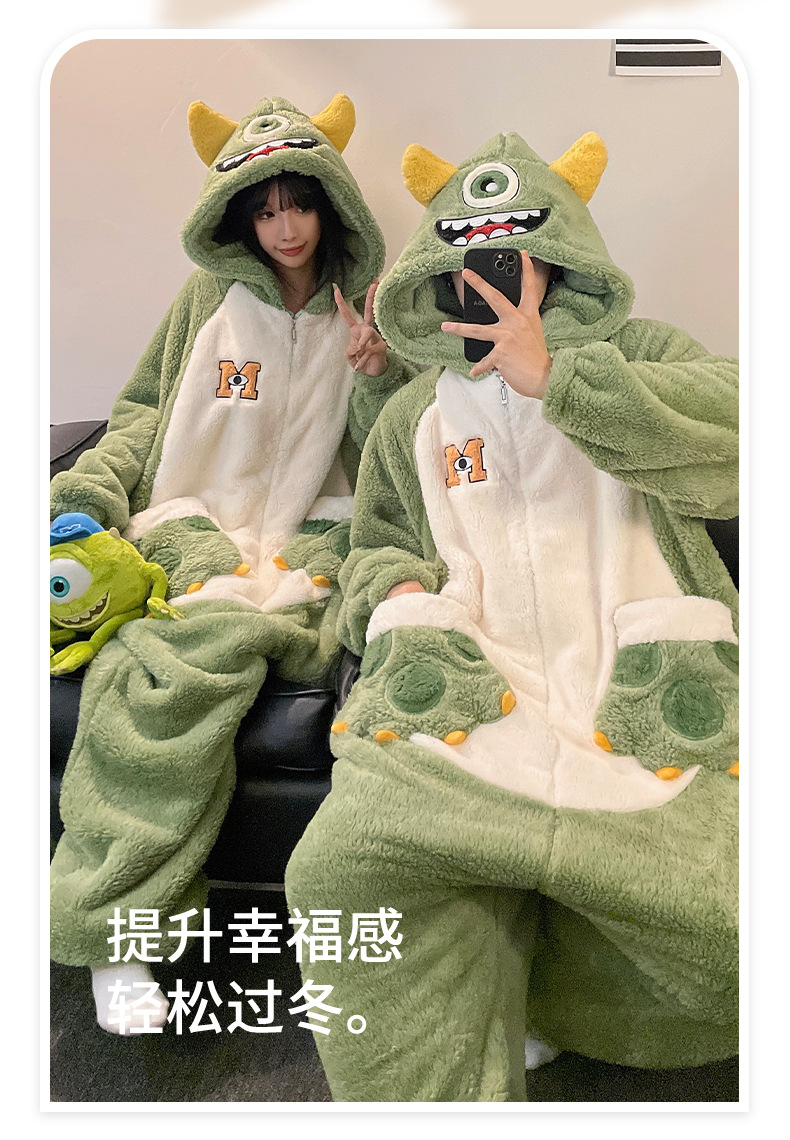 커플 결합 된 잠옷 여성의 가을과 겨울 패딩 산호 양털 만화 큰 눈 이상한 남자 플러스 사이즈 200kg 가정 옷스토어 가기