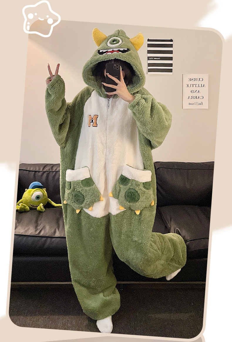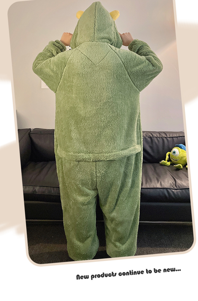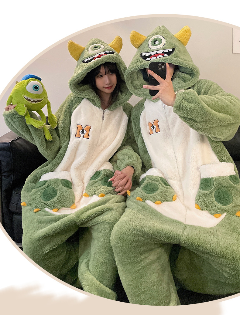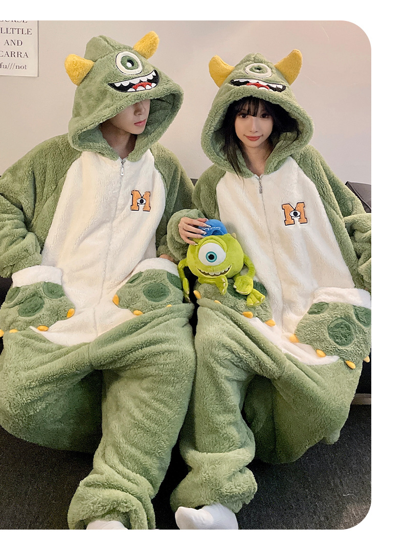 커플 결합 된 잠옷 여성의 가을과 겨울 패딩 산호 양털 만화 큰 눈 이상한 남자 플러스 사이즈 200kg 가정 옷스토어 가기