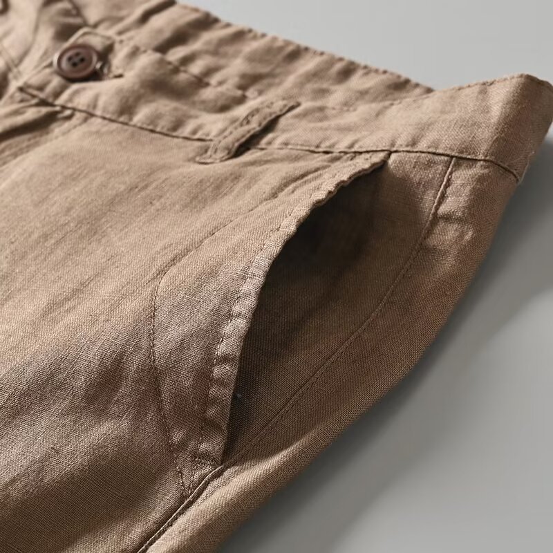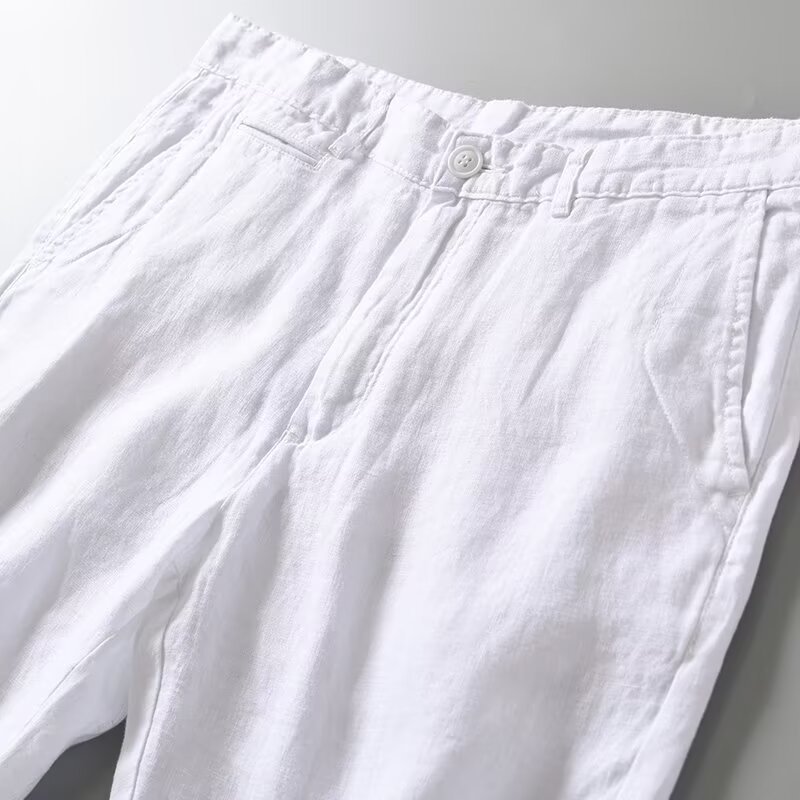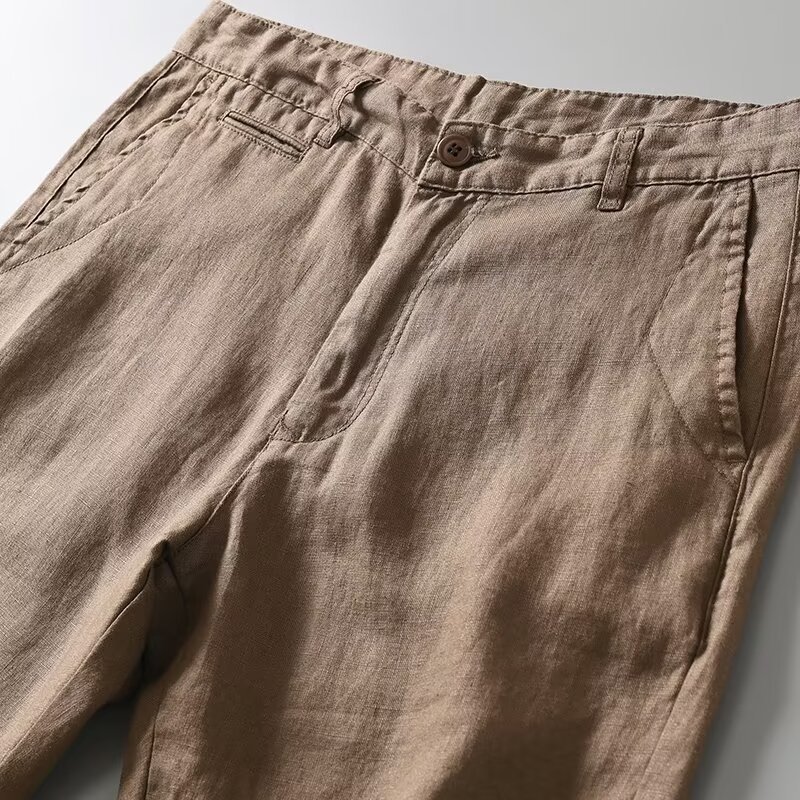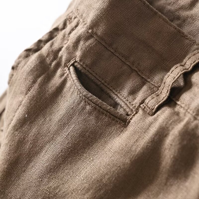 고급 순수 리넨 반바지 남성용 여름 얇은 레트로 느슨한 리넨 바지 솔리드 컬러 캐주얼 비치 바지