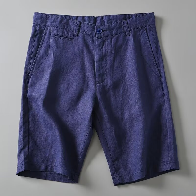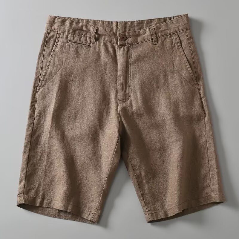 高档纯亚麻短裤男士夏季薄款复古宽松麻料五分裤纯色休闲沙滩裤男