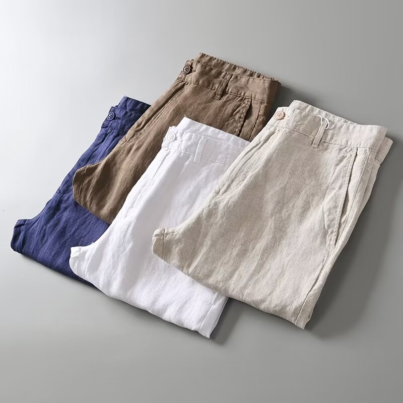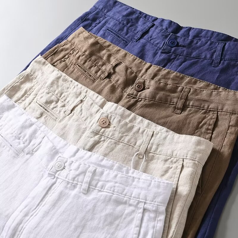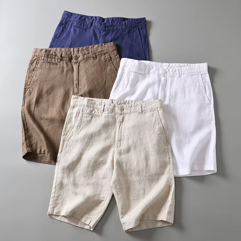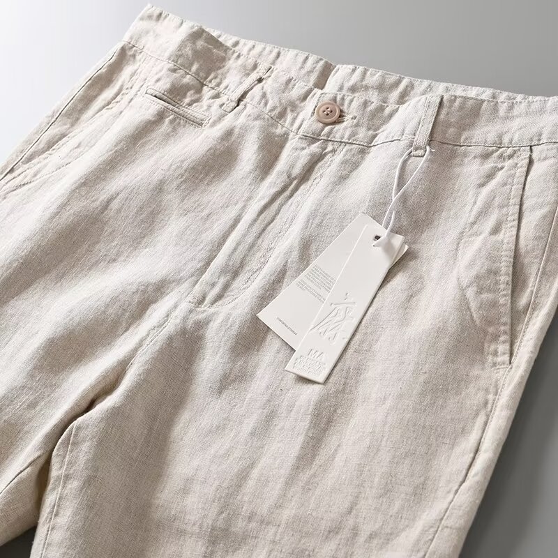 고급 순수 리넨 반바지 남성용 여름 얇은 레트로 느슨한 리넨 바지 솔리드 컬러 캐주얼 비치 바지스토어 가기