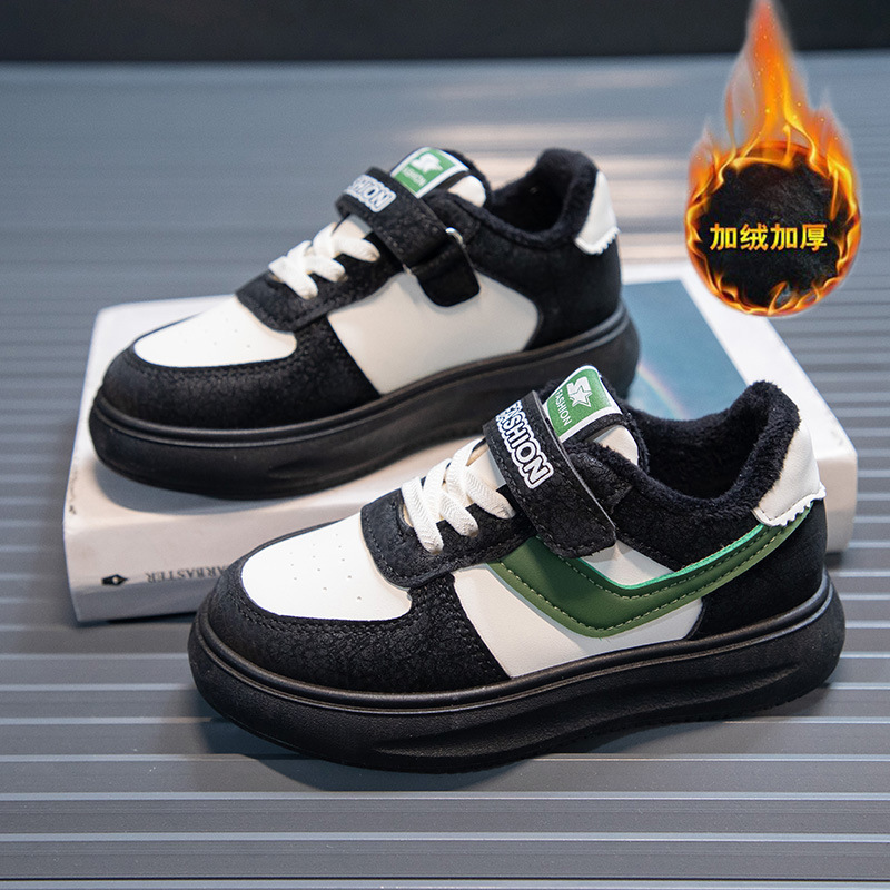 어린이 운동화 2024 가을 겨울 가죽 양면 벨크로 운동화 패션 캐주얼 신발 소년 소녀스토어 가기