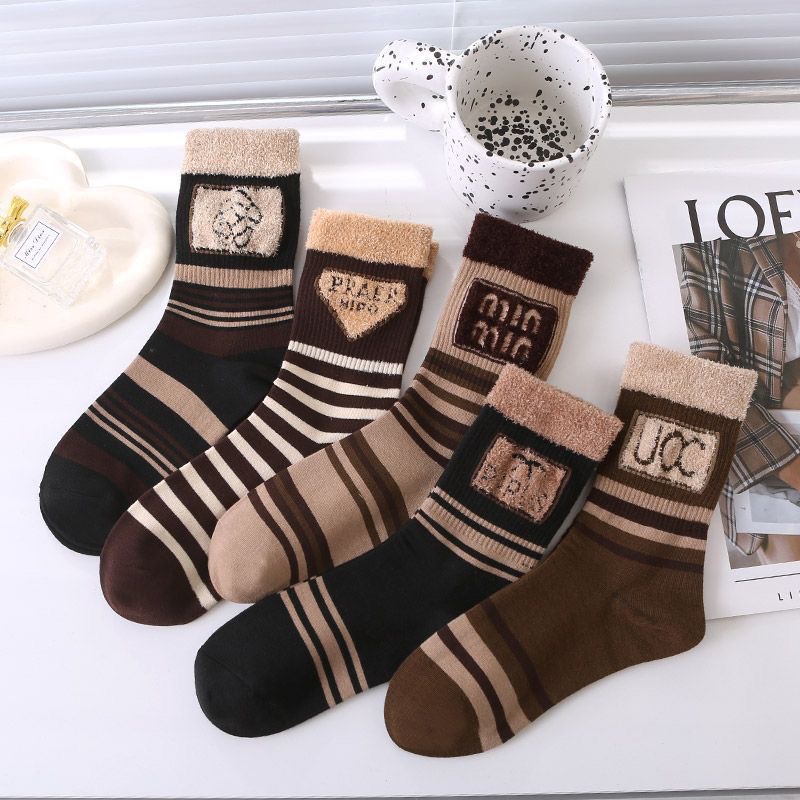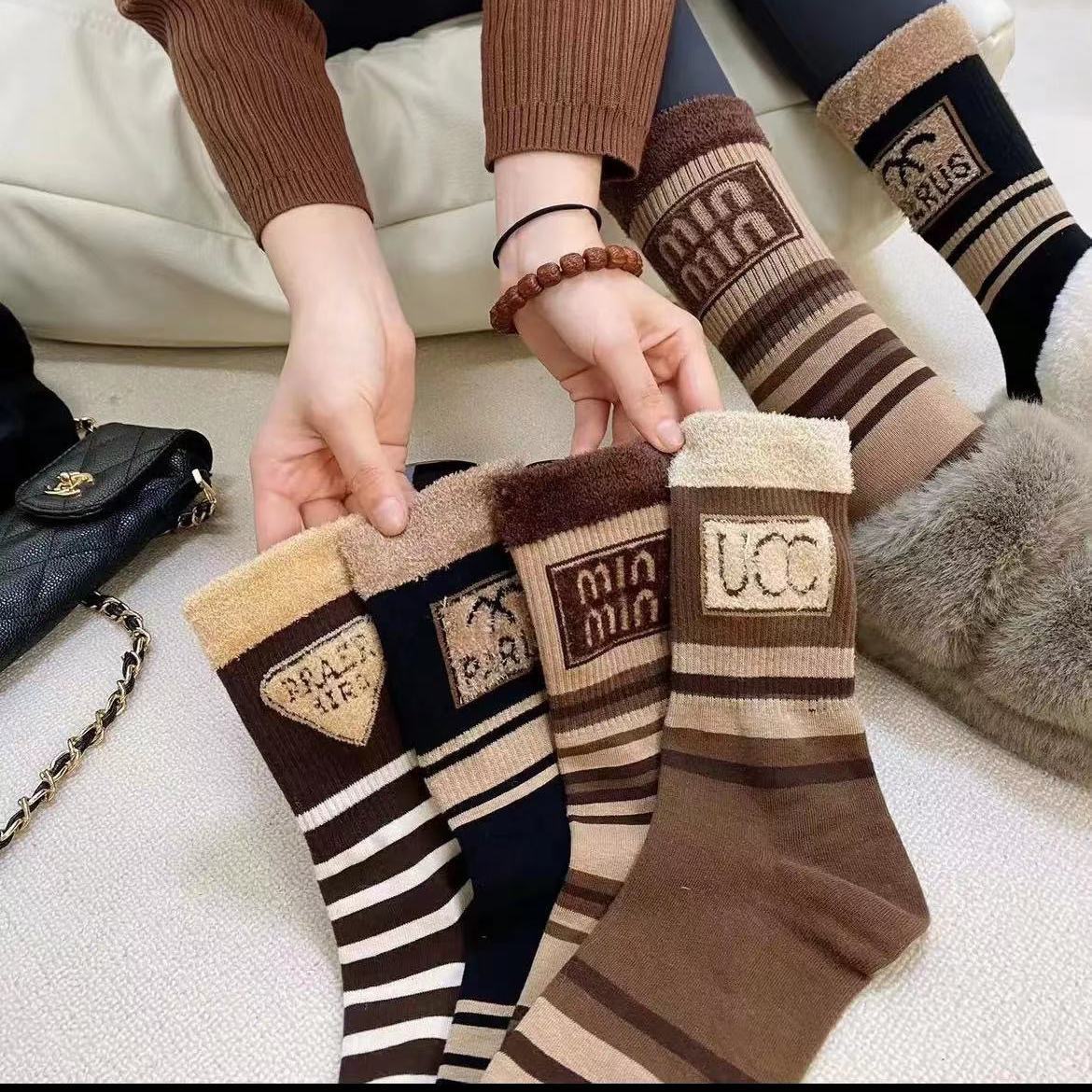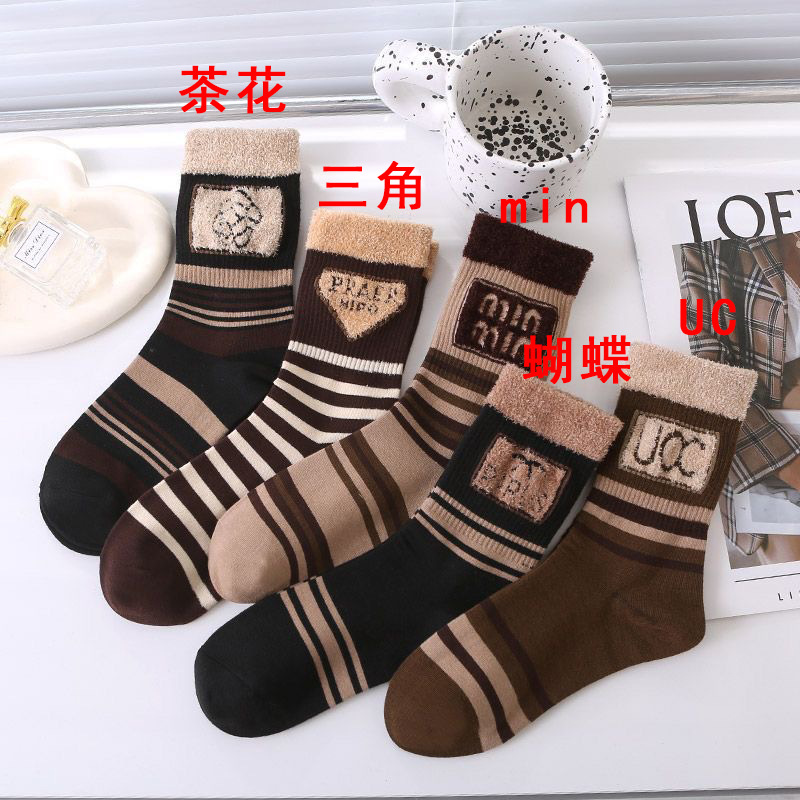 양말 여성의 가을과 겨울 긴 배럴 두꺼운 높은 색 가치 인터넷 인기있는 깃털 원사 달콤한 마일 라드 편지 블랙 미드 튜브 양말스토어 가기