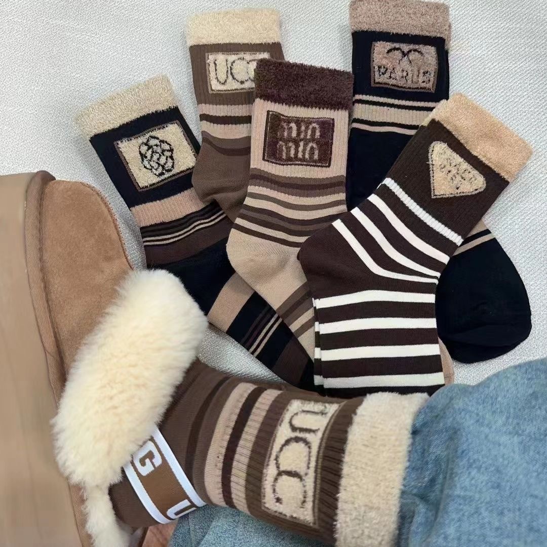 양말 여성의 가을과 겨울 긴 배럴 두꺼운 높은 색 가치 인터넷 인기있는 깃털 원사 달콤한 마일 라드 편지 블랙 미드 튜브 양말