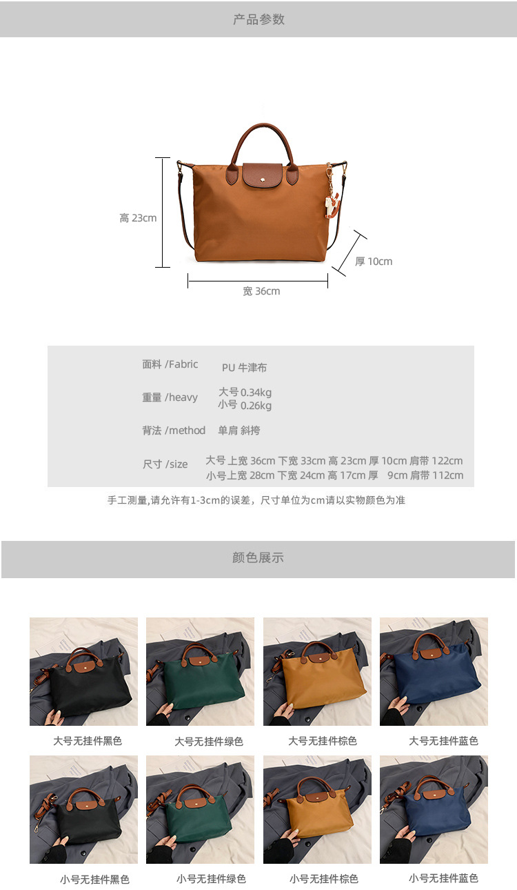 새로운 나일론 방수 어깨 가방 여성 대용량 핸드백 물 만두 가방 캐주얼 여행 쇼핑백 재고스토어 가기
