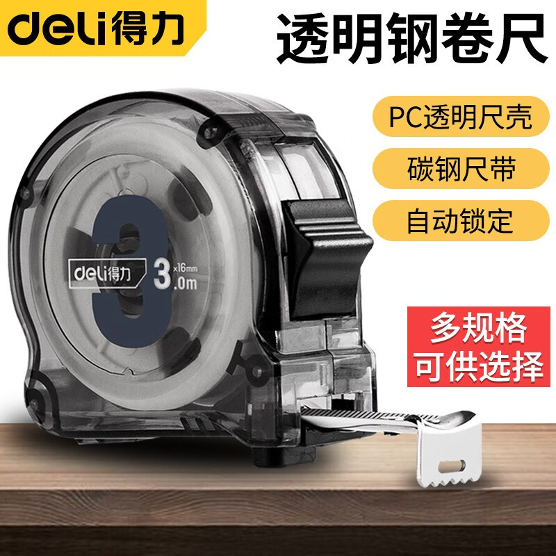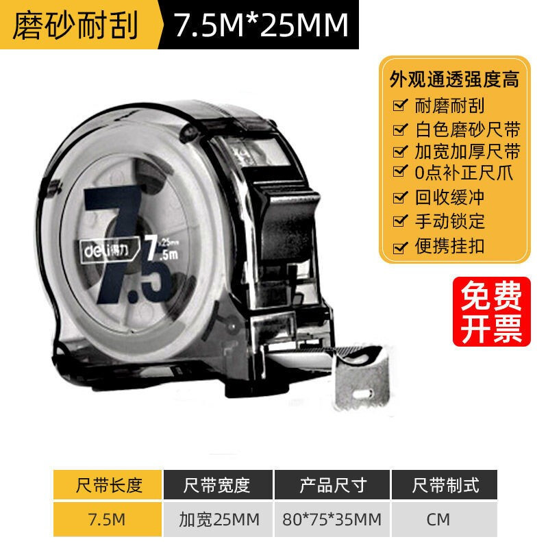 델리 투명 스틸 테이프 박스 통치자 텔레스코픽 통치자 통치자 투명한 탄소 강철 코어 소재 스틸 테이프 통치자 페인트 시트 목공 통치자 상자 없음스토어 가기