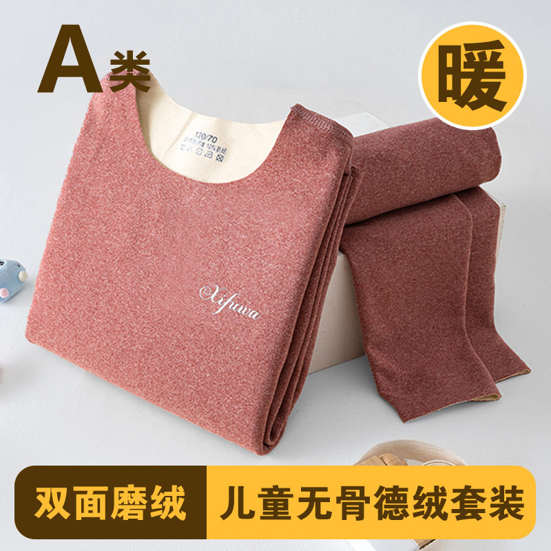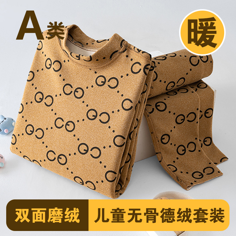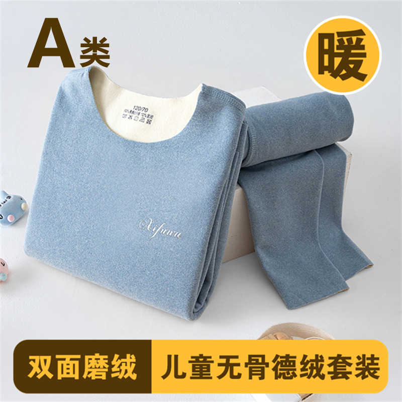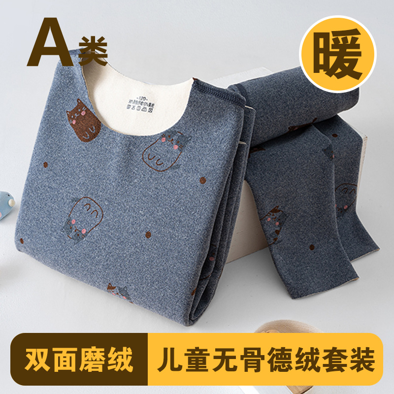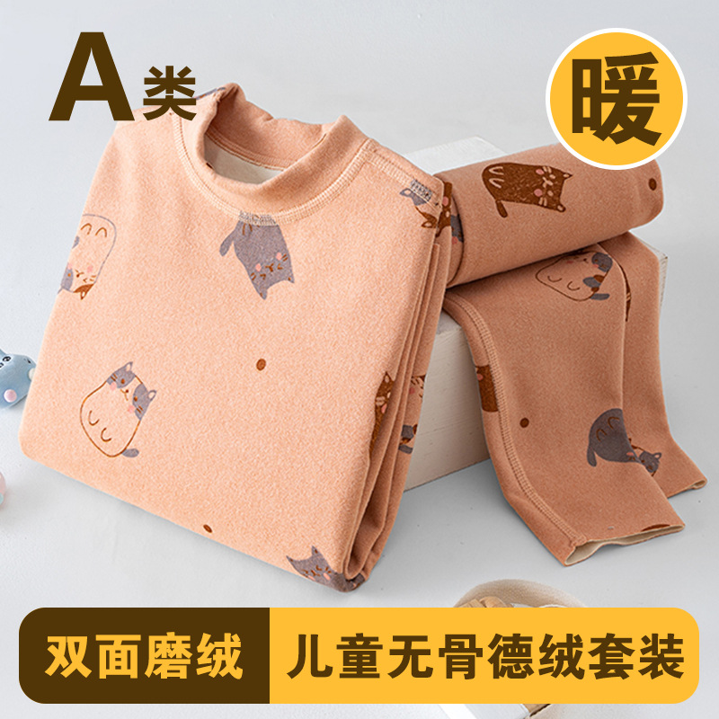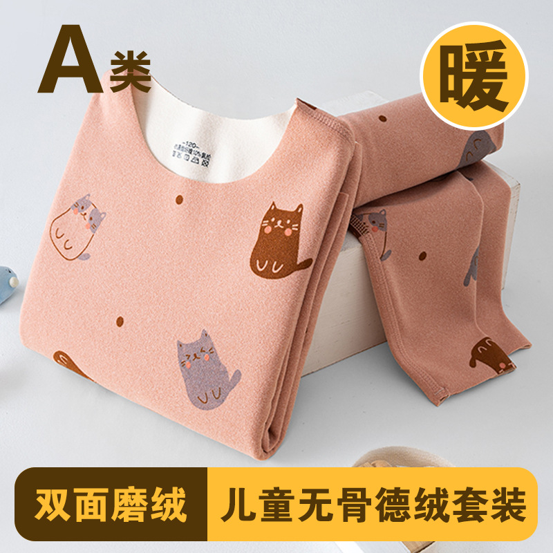 큰 소녀 클래스 A 소년 소녀 AB 국수 벨벳 따뜻한 세트 뼈없는 기모 잠자는 속옷 어린이 가을 옷과 바지