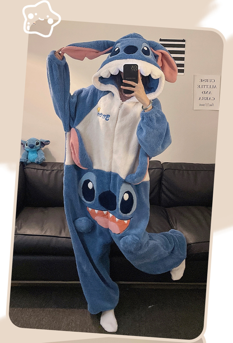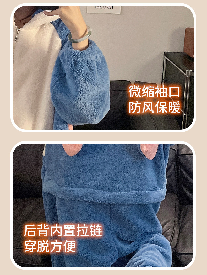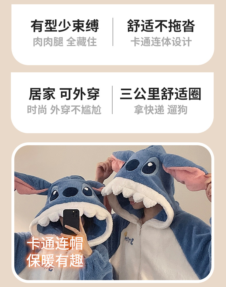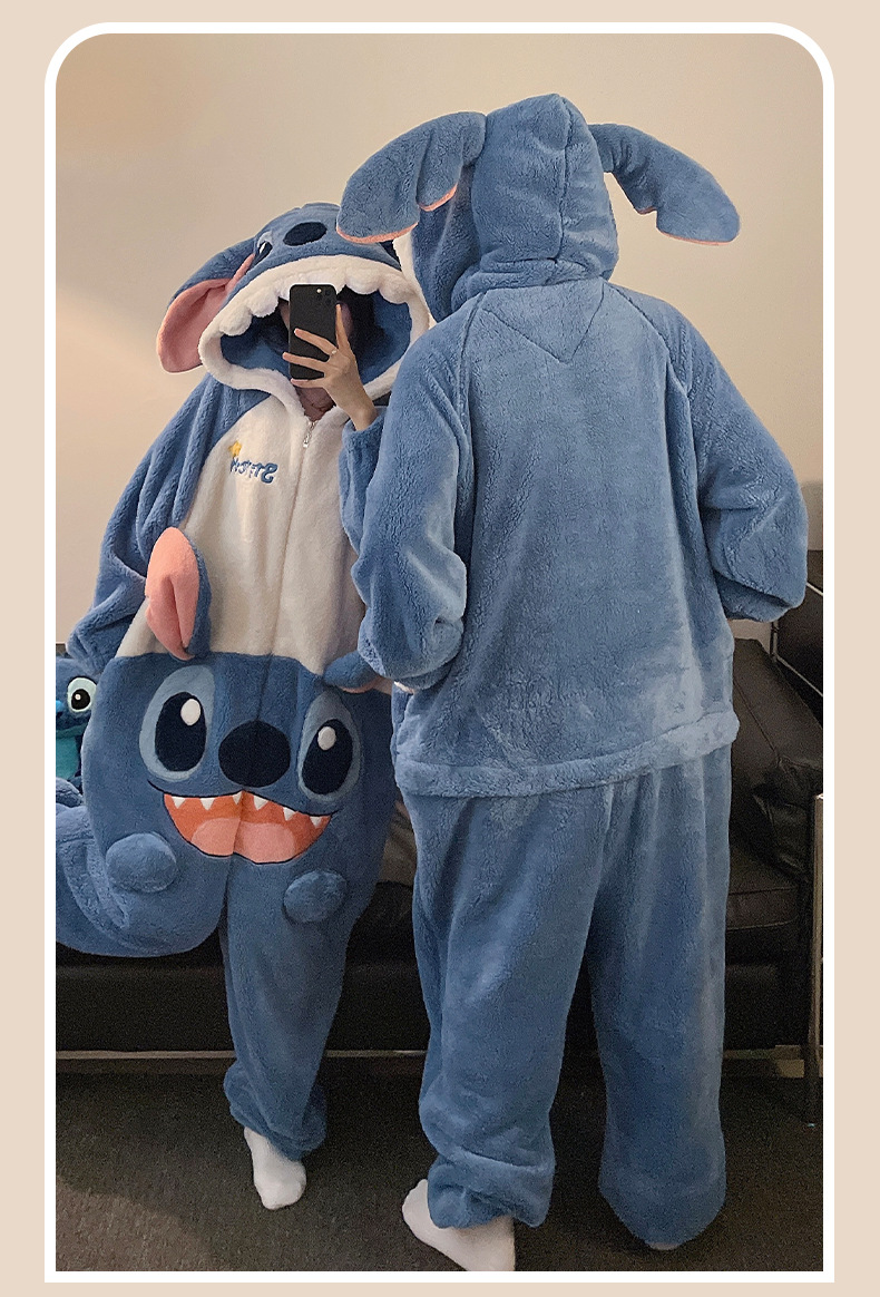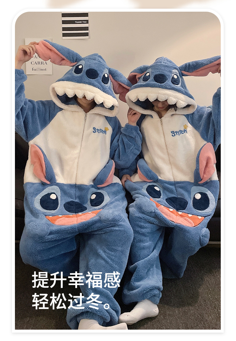 겨울 결합 된 커플 잠옷 여성 만화 사산 기모 두꺼운 따뜻한 남성 플란넬 후드 홈 의류스토어 가기