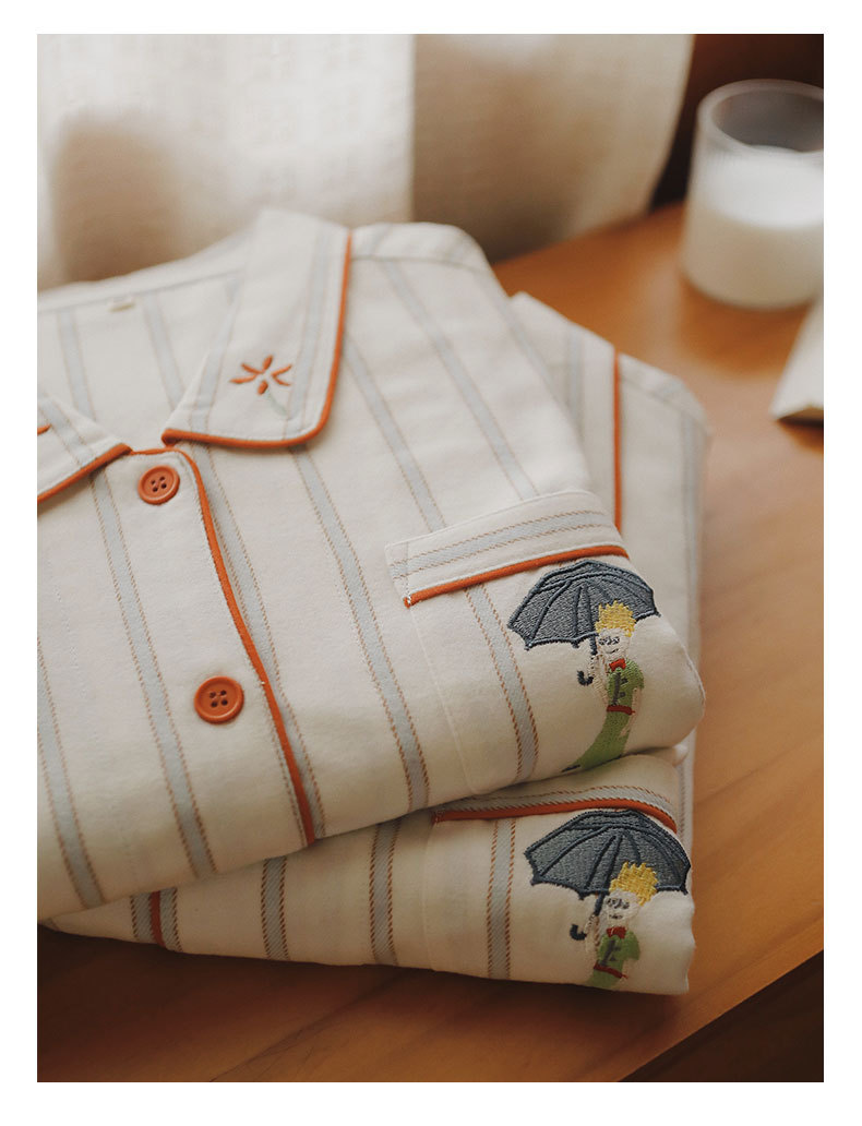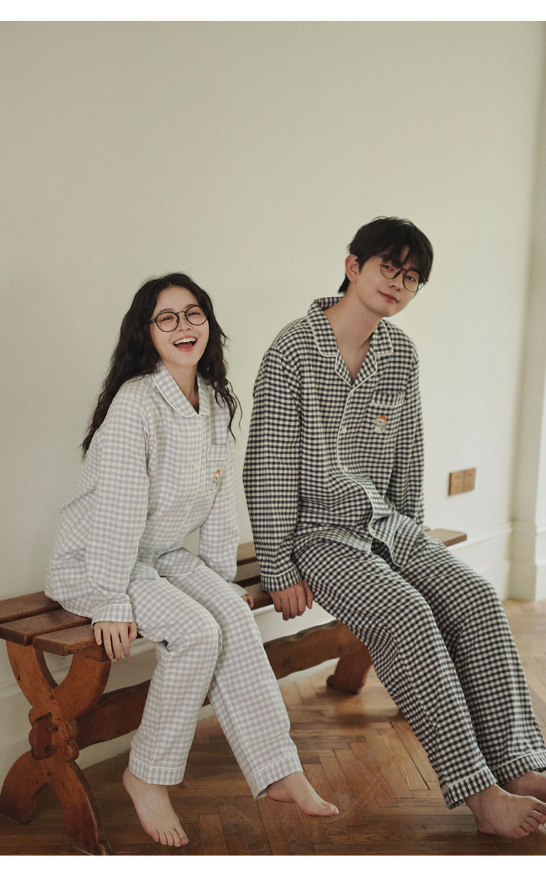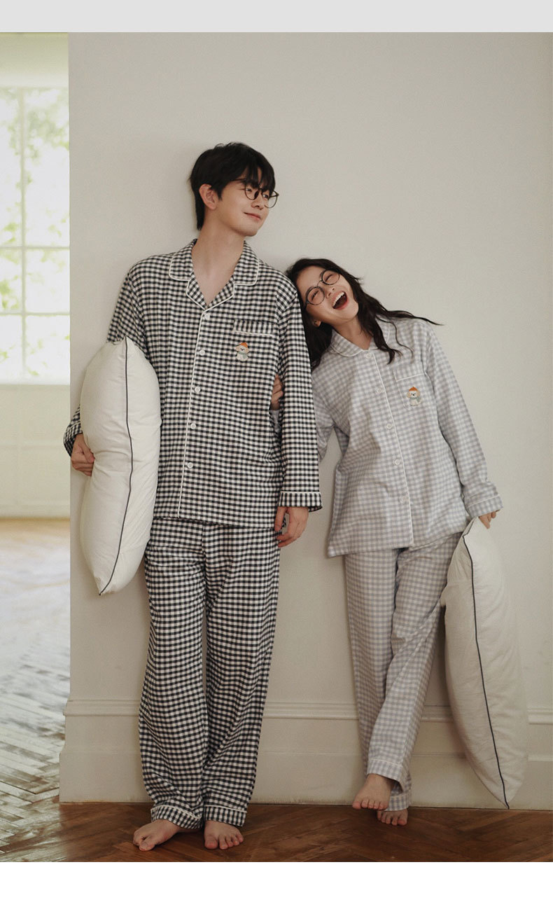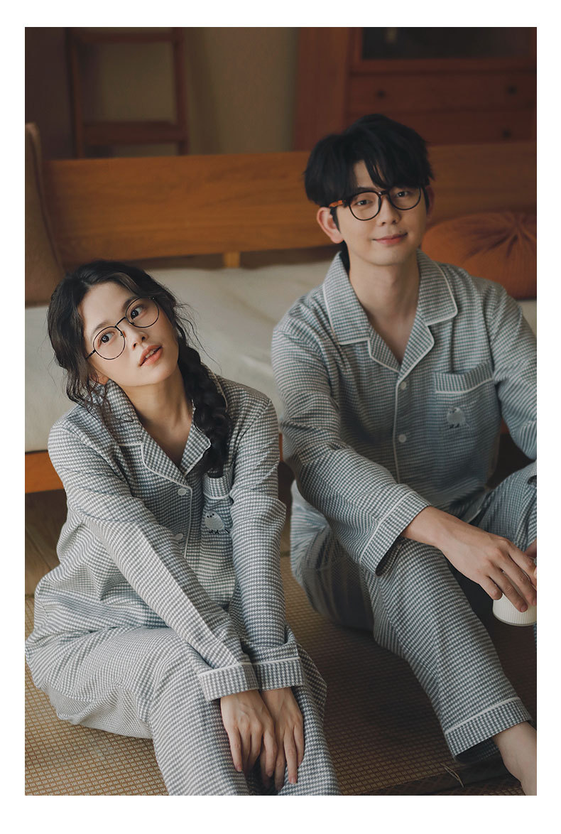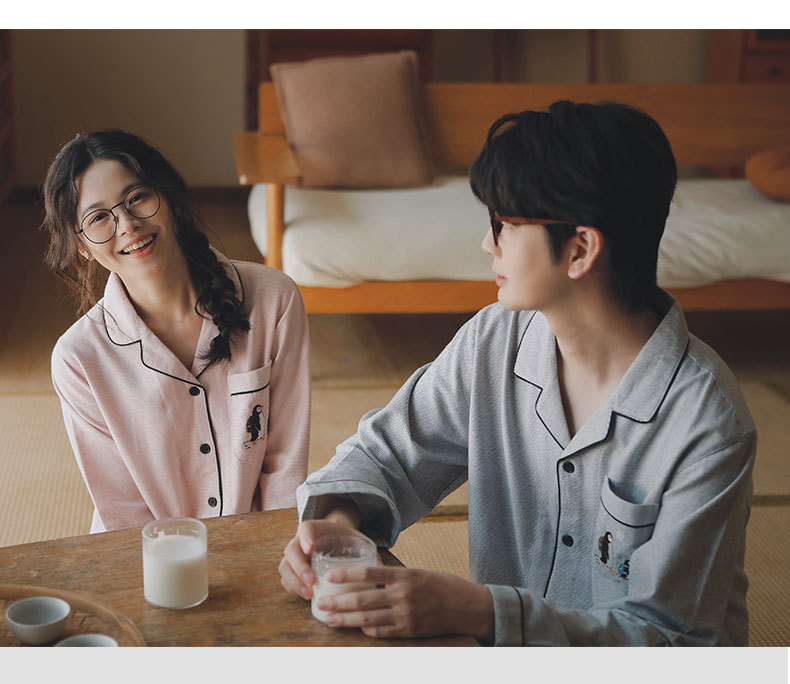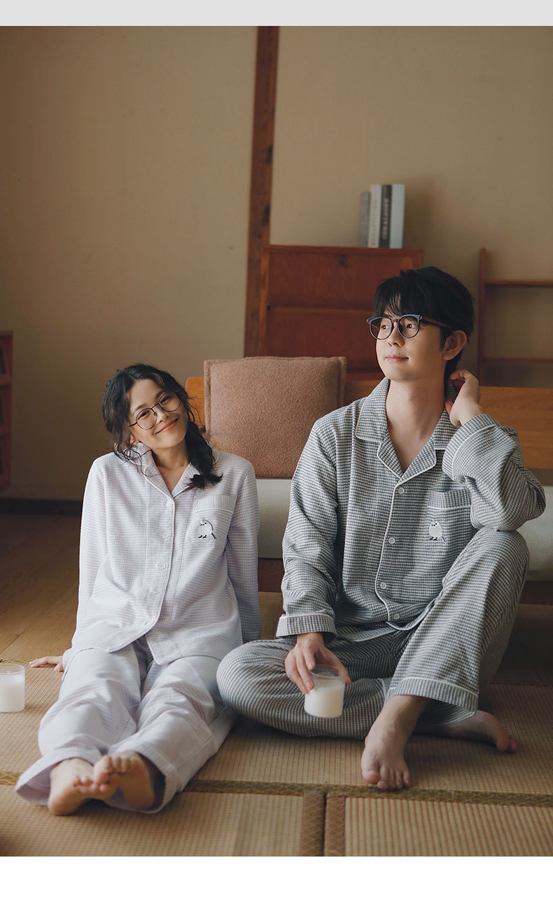 봄과 가을용 여성용 야수 잠옷 순면 커플 세트 줄무늬 자수 순면 홈웨어 남성용 대형 사이즈 외출용 가능스토어 가기