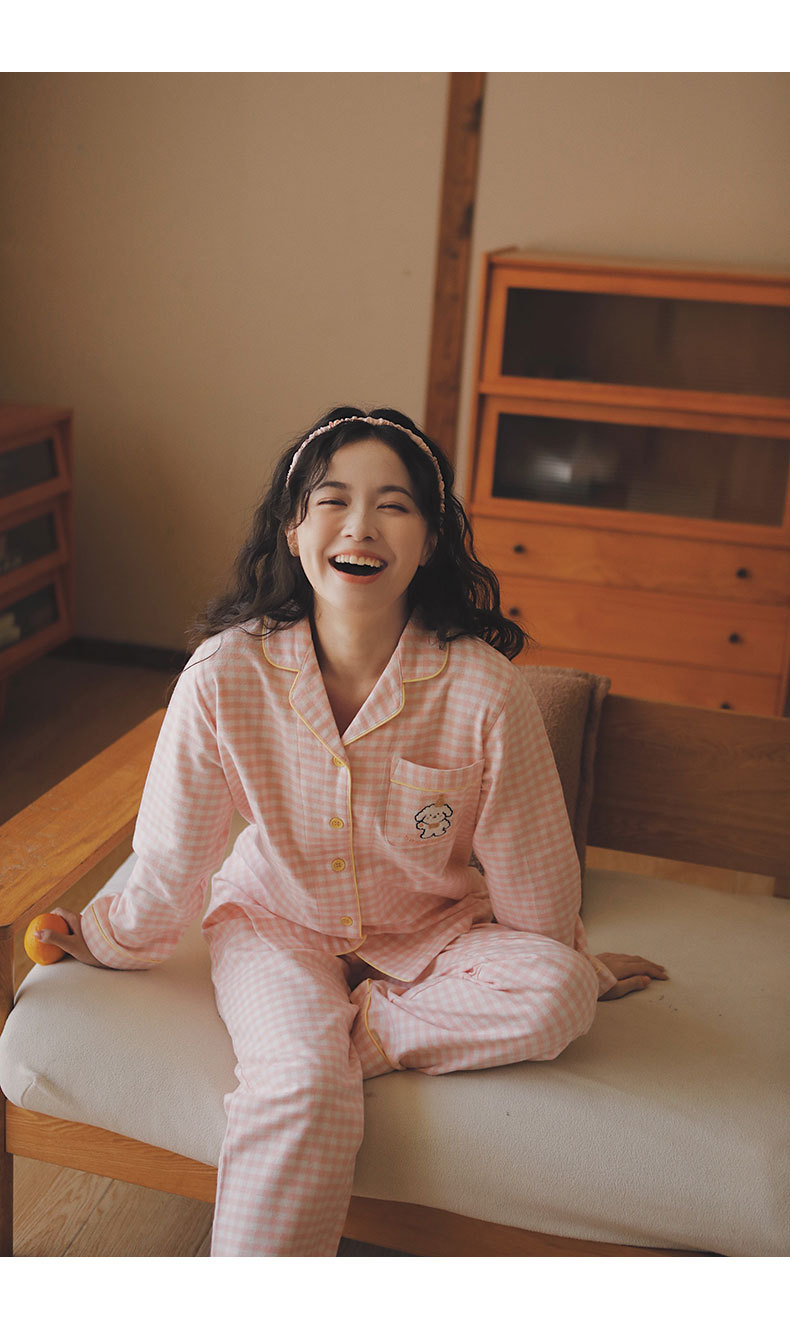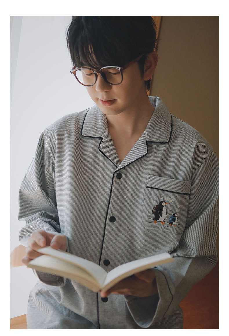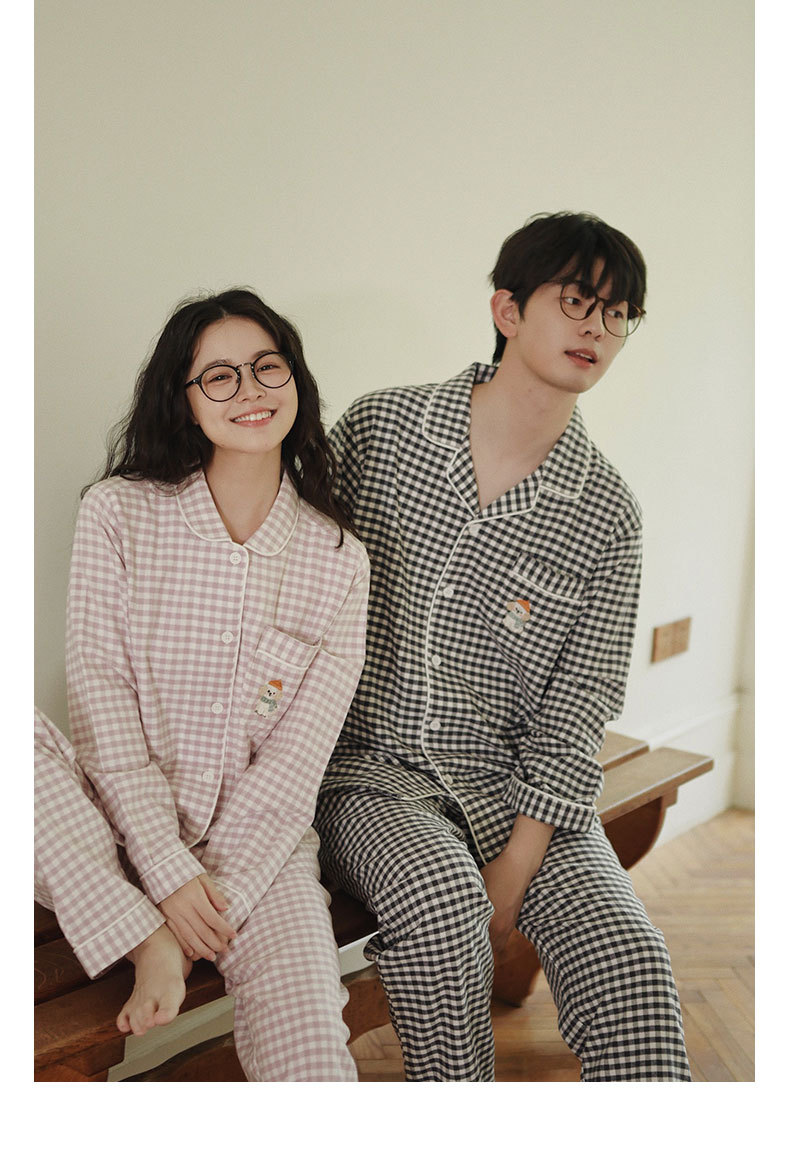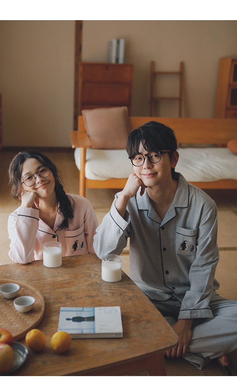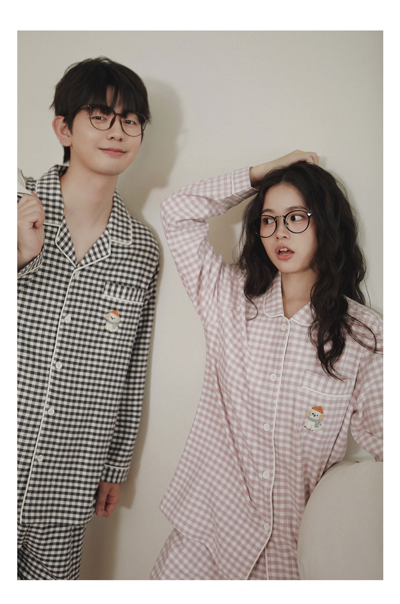 봄과 가을용 여성용 야수 잠옷 순면 커플 세트 줄무늬 자수 순면 홈웨어 남성용 대형 사이즈 외출용 가능스토어 가기