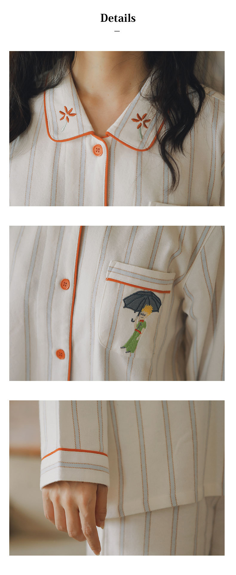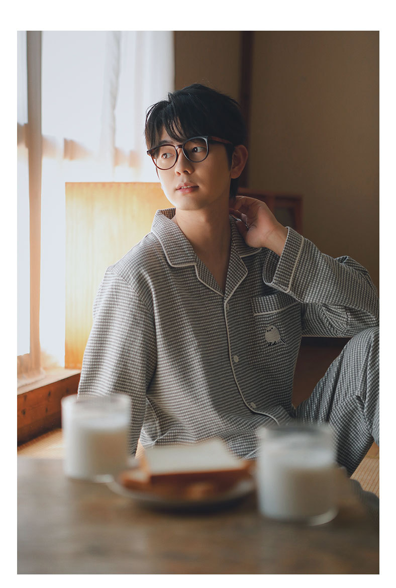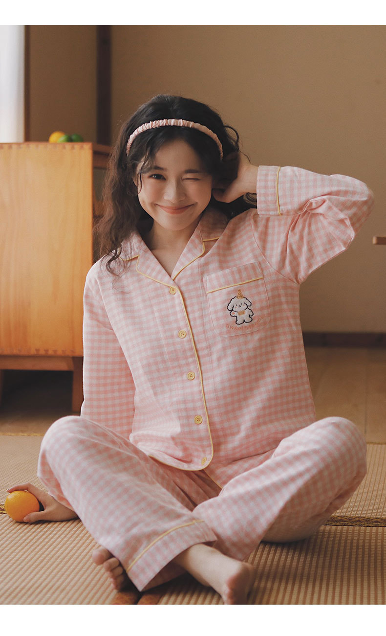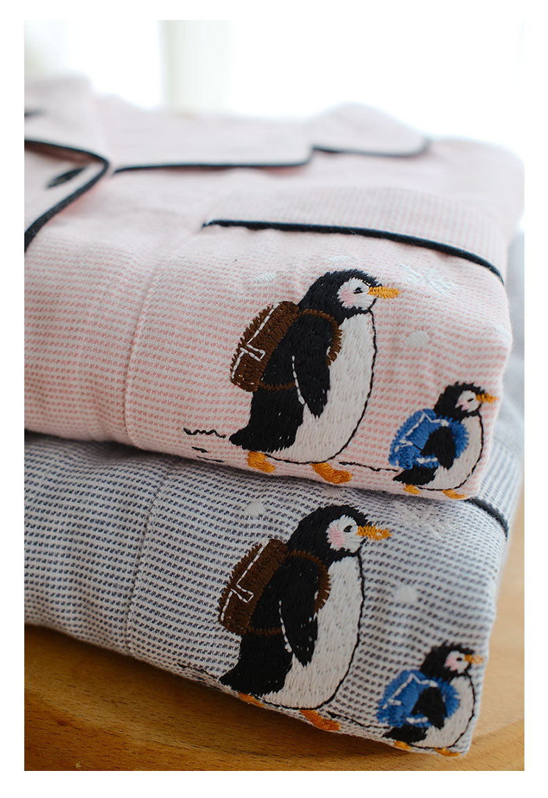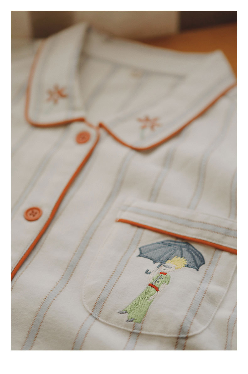 봄과 가을용 여성용 야수 잠옷 순면 커플 세트 줄무늬 자수 순면 홈웨어 남성용 대형 사이즈 외출용 가능스토어 가기